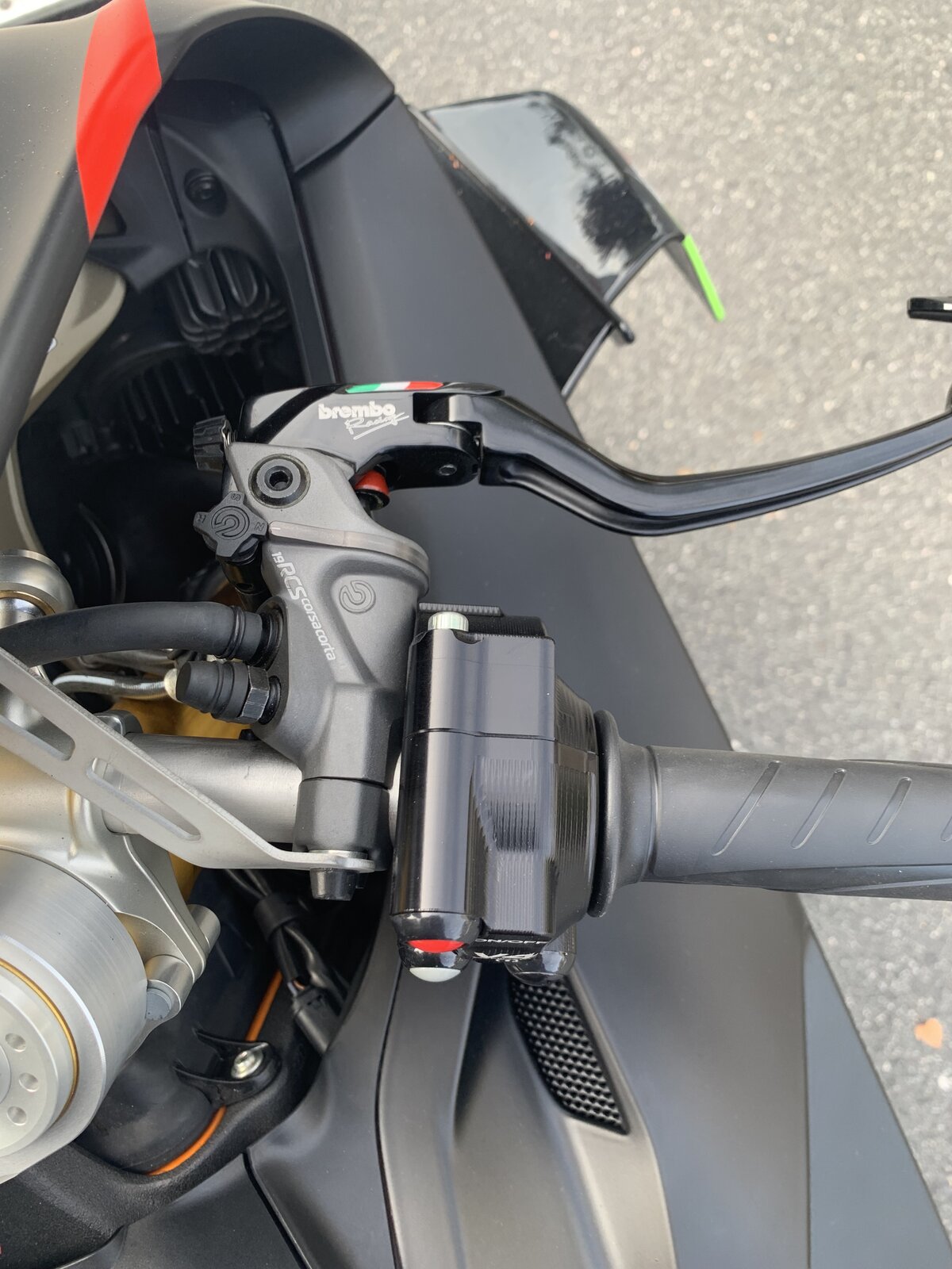 Looks great, goes great Kaspar. Can't beat that. Suspension set up for you and details like switches /master cylinder would be needed (!) even if you bought an SP. Could be you keep some of those goodies come trade in time. Always an investment in my book. Looks sweet in those colours! Dave