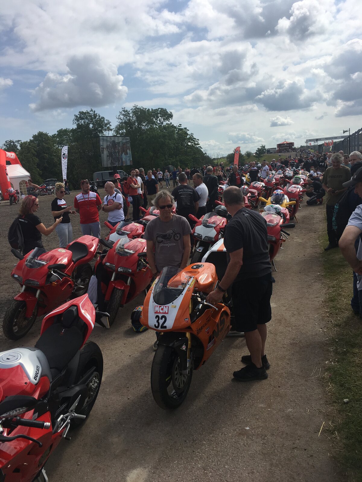 A great day out and briliantly organised by DOCGB, worth the annual subscription just for today alone. There was supposed to be a parade lap of 916/748/996/998s which then morphed into a parade lap of everyone who had a Ducati and wanted to take part. Probably over 100 bikes . Unfortunately, despite everyone being assembled and ready to go out on the track it didn’t happen at the allotted time -just before 11 and was rescheduled to 4.45-5 by which time I and most others had departed . Still the sight of all those Ducs ready to go was worth it.