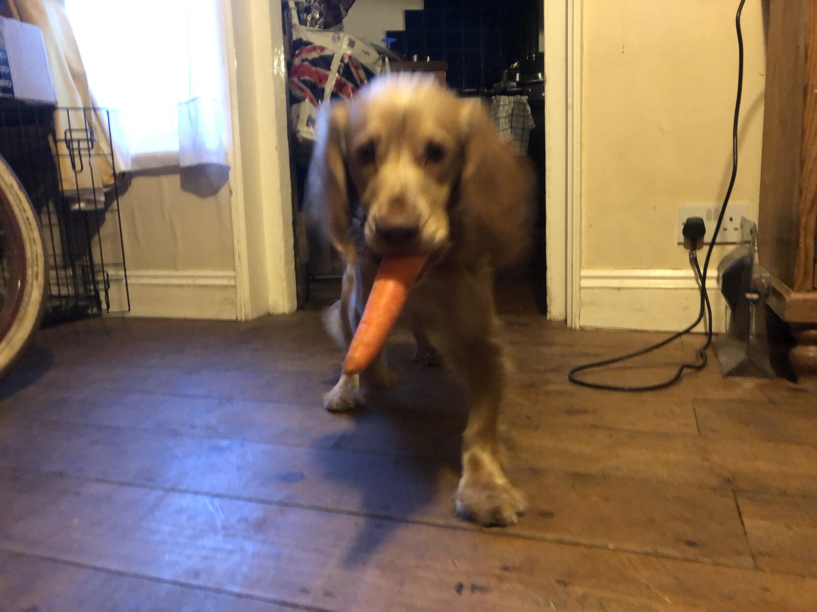 Yep, Stella loved carrots. We keep our veg in the garage and she’d often venture in there for some carrot action.... we always latched on after we discovered carroty turds on the lawn....