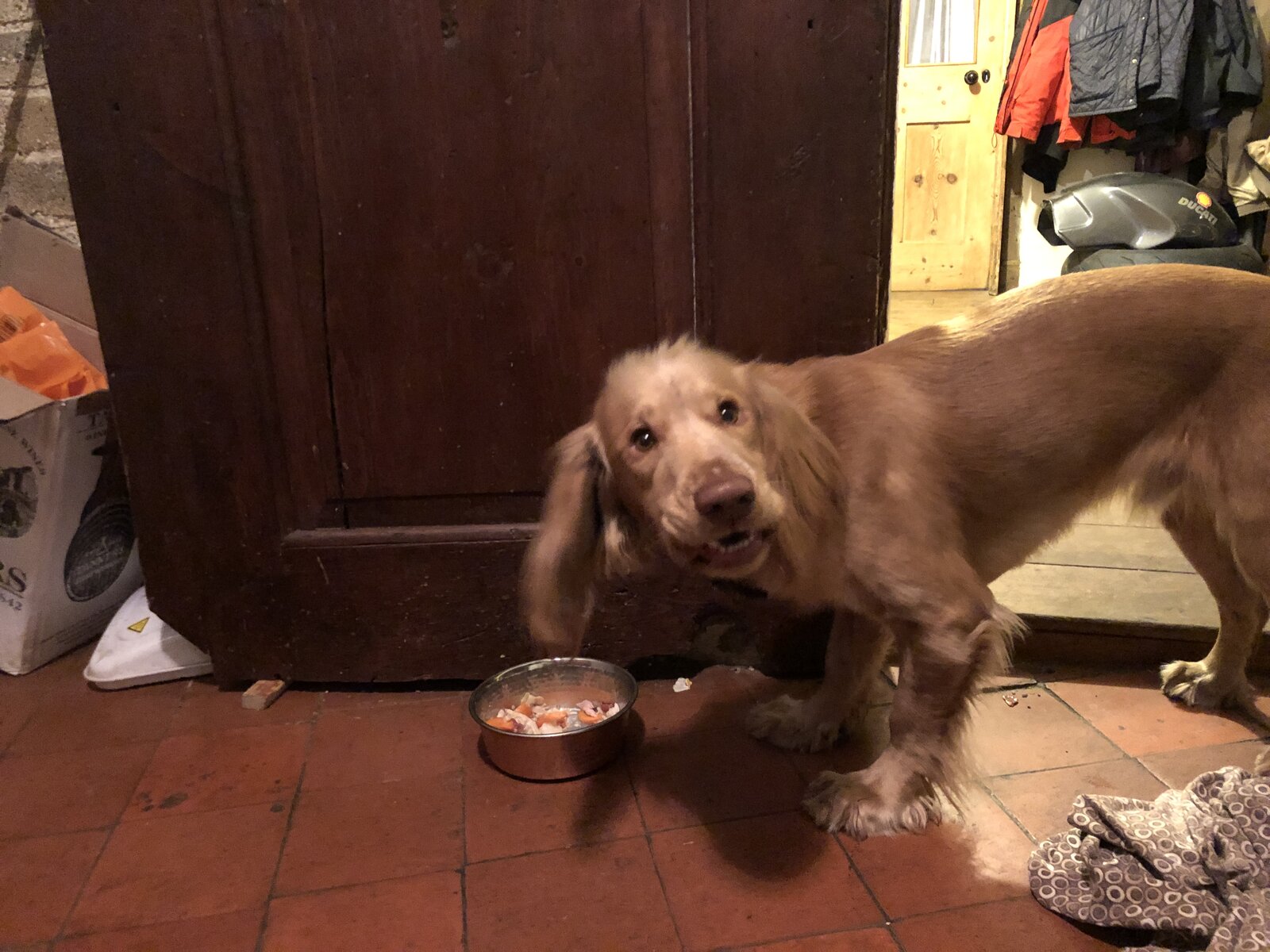 Here’s Griff, 13 year old border terrier who loves carrots and broccoli. Chopping vegetables up and he’s always there wanting a bit