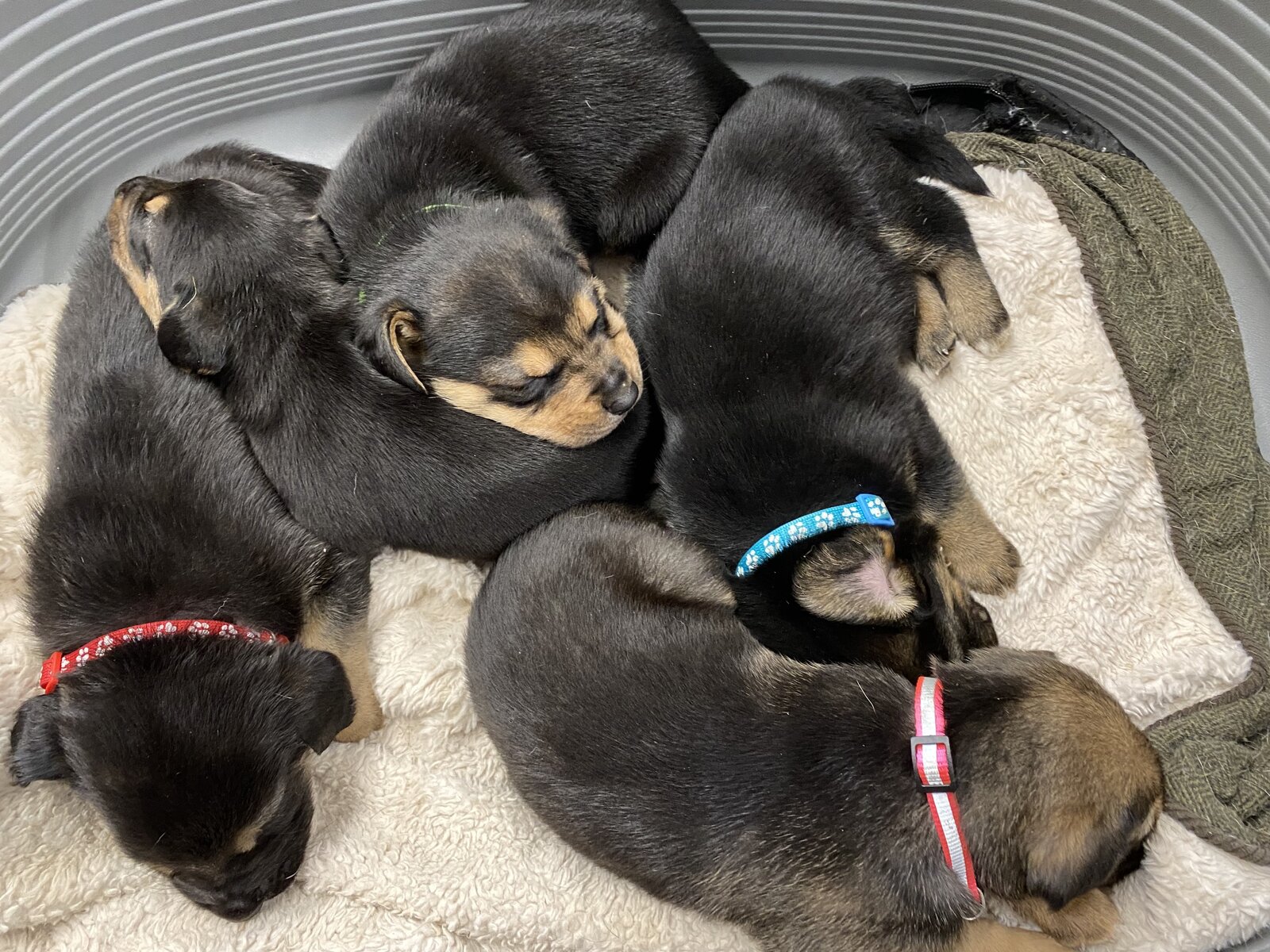 So, 3 1/2 weeks after teh big day and here's the tribe so far. Still no idea which way its going to go in terms of shape/features yet Been a few sleepless nights, but tye just starting to get up and about properly and started play fighting and exploring so the next stage has begun Been hard but fun overall, will be her only litter I think so making the most of it