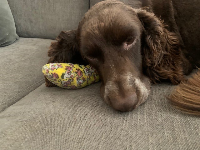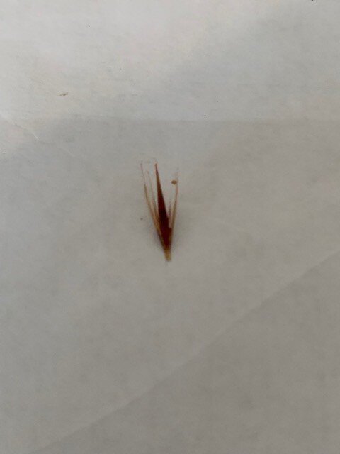 By the way my oldest cocker has had three ops in four days to remove bastard grass seeds over the weekend. My vet said that becuase they are barbed, they carry up the inside of the leg if not spotted and she has seen them puncture lungs or have to be cut out of backs. Moral of the story, check paws regularly and thoroughly after youve been out in long grass/fields with your beloved dogs. My boy is sat here feeling very sorry for himself but it could have been a lot worse. Pic of offending seed and recovering pooch...