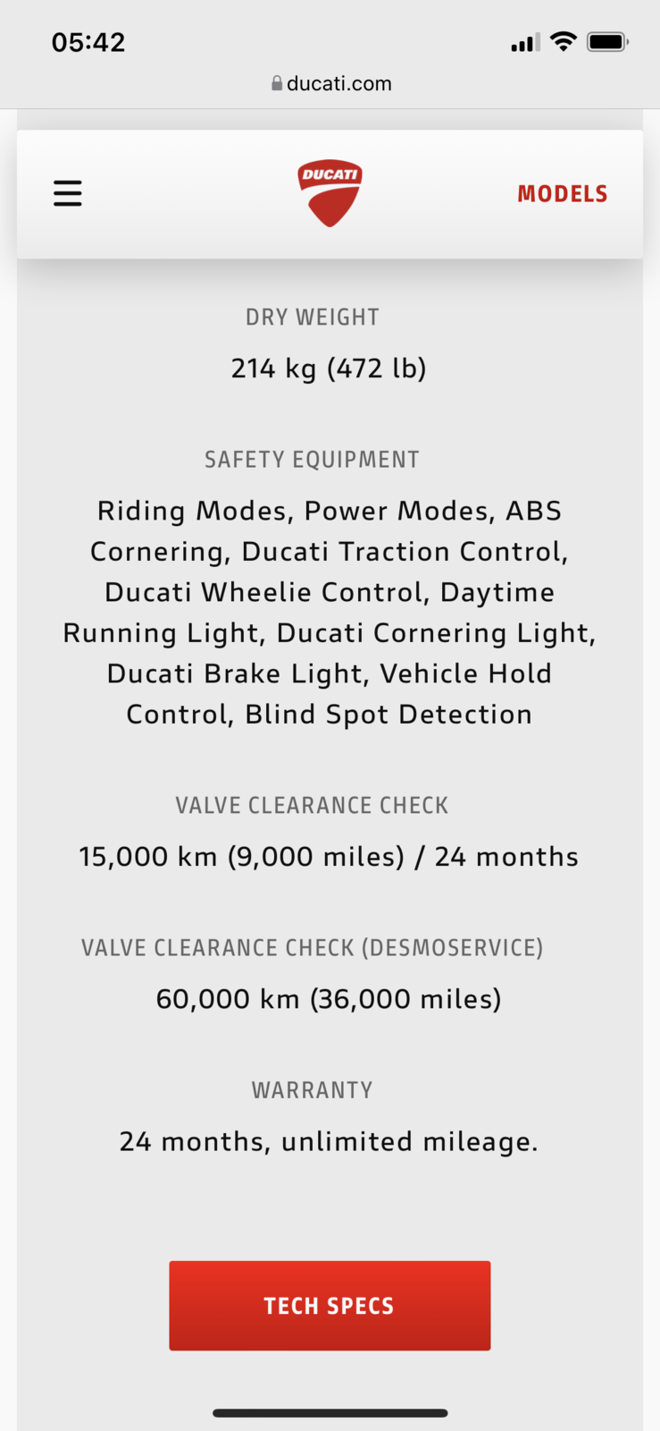 I'm absolutely sure that I read the tech spec the other day and it said 48 months warranty, now says 24. Unless I was on a different Ducati website that shows something for another country. Oh and that 9 month valve clearance shows here too. How much are they?