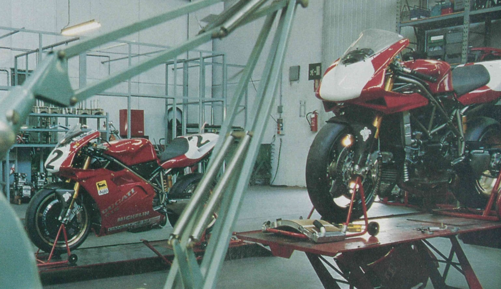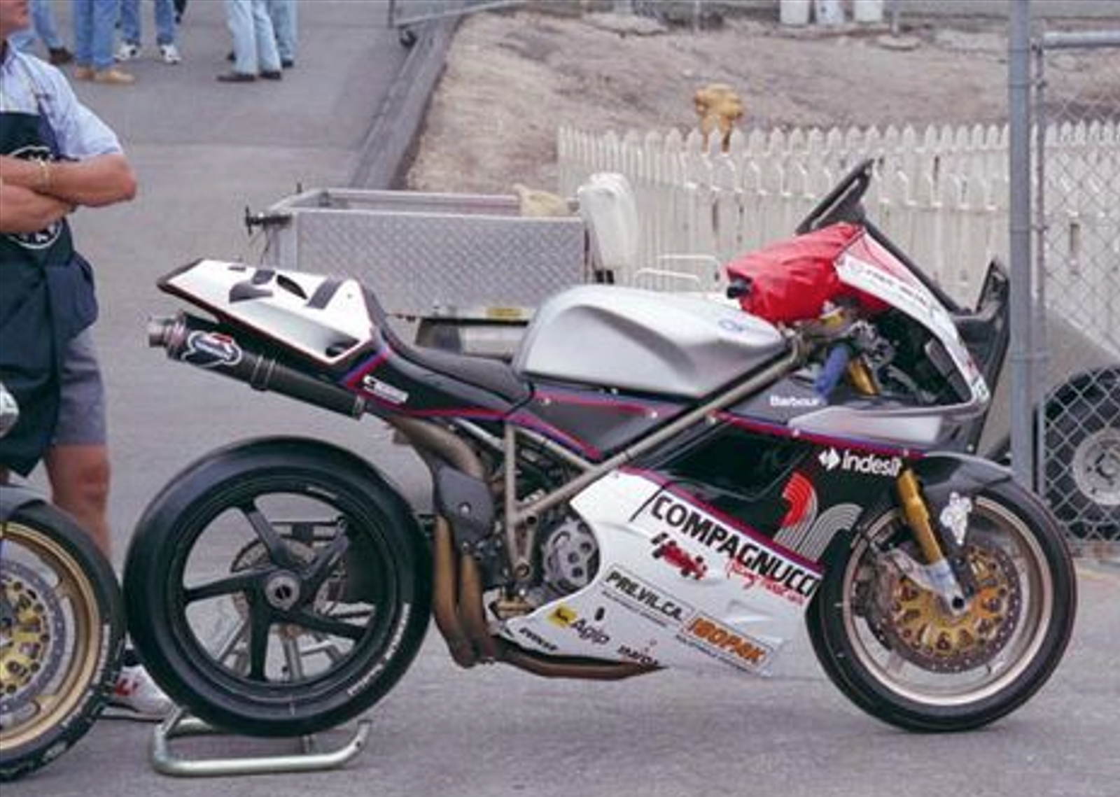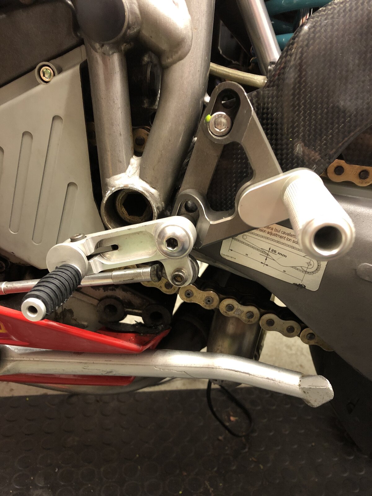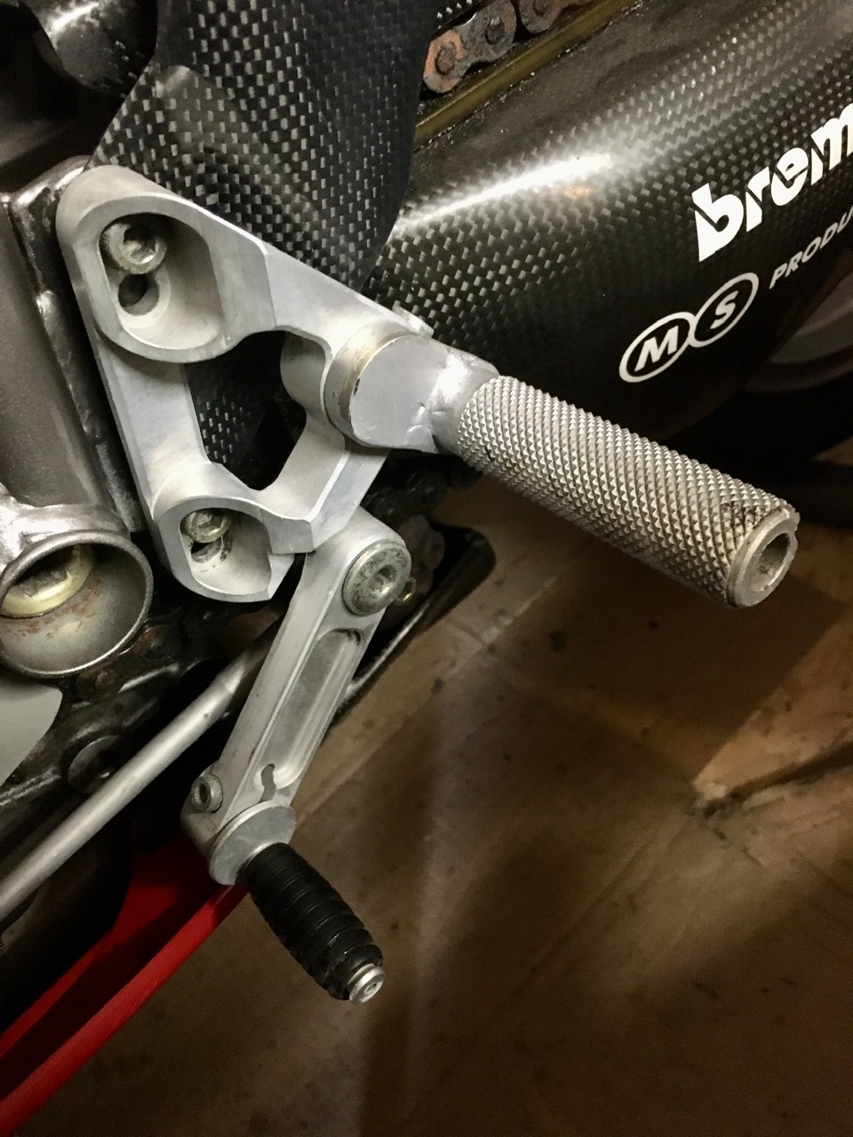 Interesting read. I have seen a Cagiva Racing 1994 rear set sold on ebay. My 95 916 Racing has a similar looking rear set and Cagiva stamped on the rubber. Slightly different to the pictures posted in this thread, but I think the origin was Cagiva Racing which then became DP in 1995 and onwards? Pictures from 1994-1995 shows Ducati Factory bikes had similar looking rear sets. Ebay - Cagiva Racing 1994 (note that the gear lever is attached to the rear set): Gear side of my 95 916 Racing: Ducati Corse Factory winter 1994: Chili #27 1995 bike: My 916 Racing is a PF Chili 95 wsbk bike, so "the mystery of the rear sets" is just one thing out of many, which I am trying to learn more about.