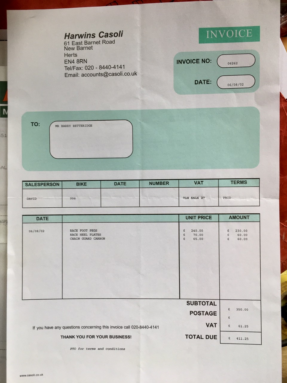 Here’s mine, I know, they’re filthy, the bike’s new to me and undergoing a refurb, they’ll be cleaned up. You can see the price the original owner paid back in 2002. Harwin Casoli was a London based Ducati specialist at that time - no longer around - as such, I presume they are genuine DP ones of the era