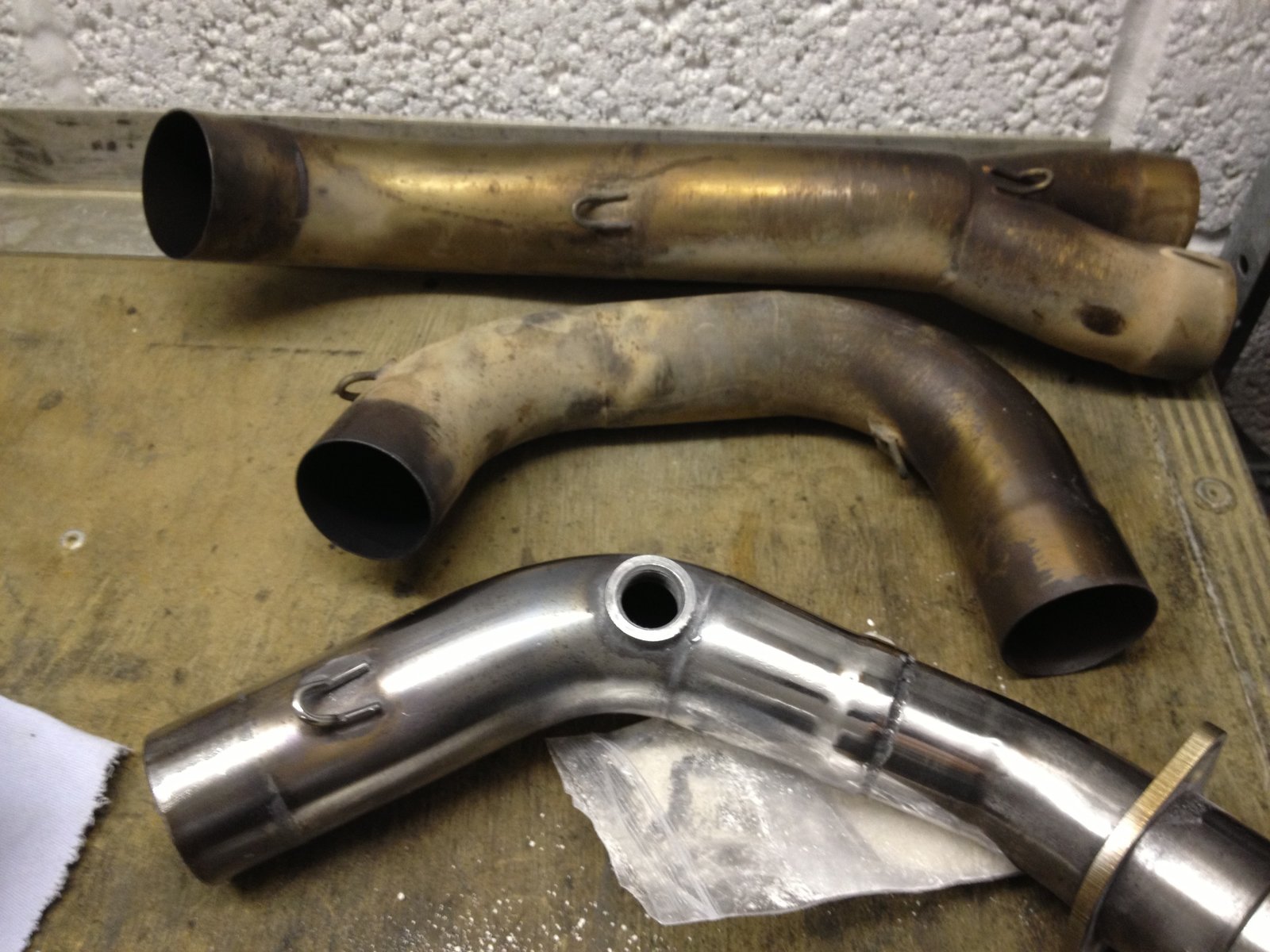 On really rusty / heavily stained steel headers and downpipes using Harpic really will make your job far easier and quicker, be warned though it contains Hydrochloric Acid, making sure you wear gloves and goggles goes without saying, but also make sure you cover any other parts of the bike you wouldn't want it touching etc. Doing it once is fine but I wouldnt recommend using it regularly. Once done then polishing them to a stunning shine using the usual Autosol (which I also use regularly) or I also use a couple of other metal polishes that yeild superb results but aren't as aggressive and great to help protect and maintain the finish.. Peek metal polish is awesome, Sometimes available at Costco around £13 for a huge pot applied by hand or by machine gives awesome results... Another highly recommended metal polishes are known as the Britemax Metal Twins, These are liquid polishes and once you've used the more aggressive polish the fine finishing polish is also a sealant so helps protect your hard work, it's a great alternative product especially for maintaining the finish..Ive used this a lot on 100s of engines.. These polishes are also great on other types of metals and finishes.. Just my 2pence worth on a few other alternatives that are great to have, Once you've achieved the finish you want then maintenance is a doddle with the above metal polishes.