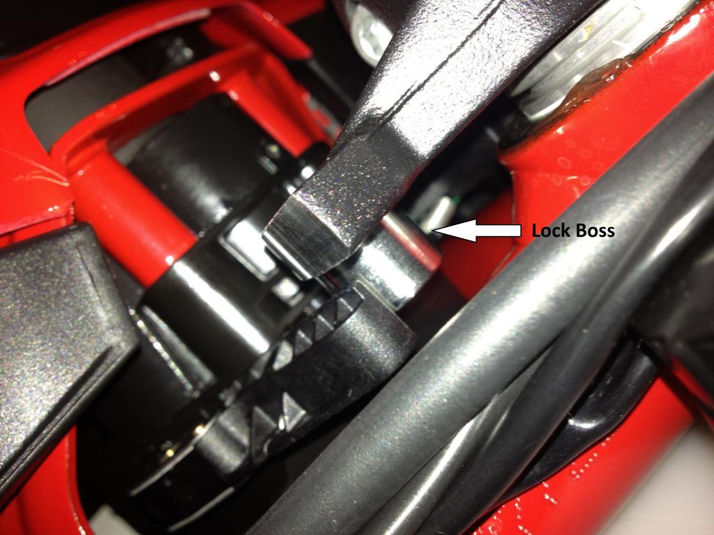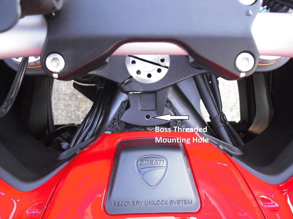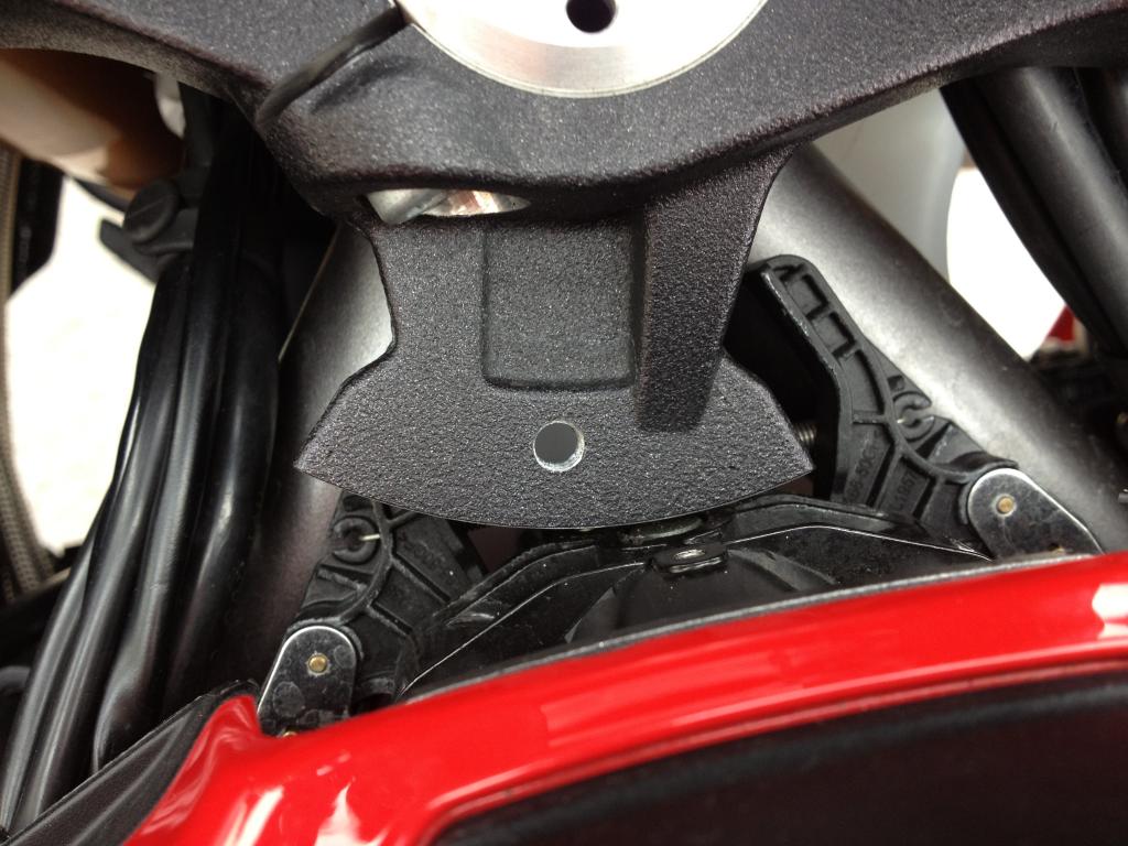 Thanks for pointing this out. This is a good post. I've checked mine and I can't see any sign of over spill of thread lock, however it's been in for 25K miles so it aint going anywhere. I think you'll find a few opinions on here that don't always mesh well, especially after a scare. Given the amount of cable drag on this bike going lock to lock you'd be hard pressed to notice this during a straightish journey. It might have started to feel like headstock bearings before it finally "set you straight". Don't forget the bars hardly move once you are above 30MPH. The wear shown in the photo could easily of occurred during one journey, so a pre-ride check may not have noticed anything. Very scary and yes I agree not designed with failure in mind. A bit like the front fork foot. Note if you fit the Ohlins steering damper you can't even see this bolt!