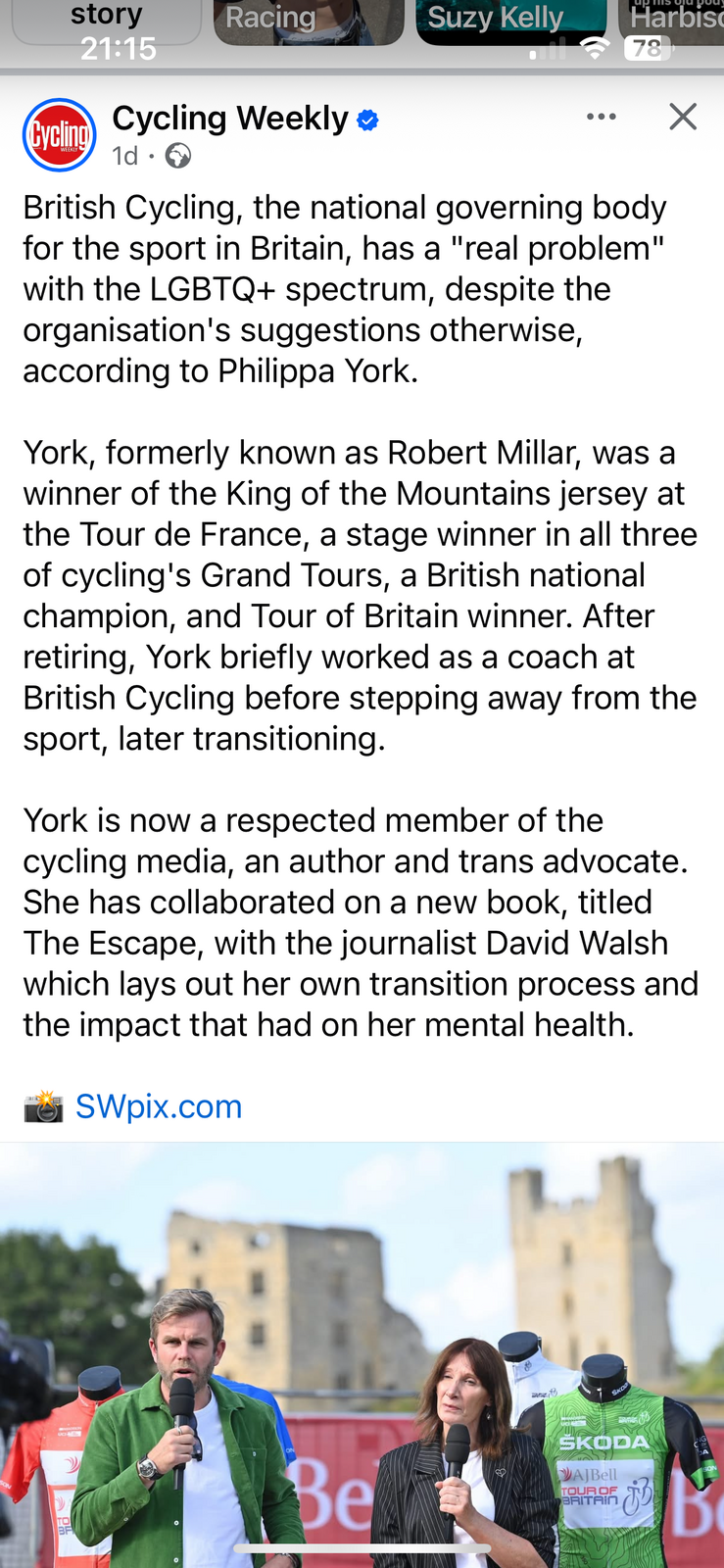 Very honest and straightforward person. Achieved a lot in the TDF but then changed to make themselves happy, good luck to her. Not a person to bang the drum for trans athletes, just a good commentator.