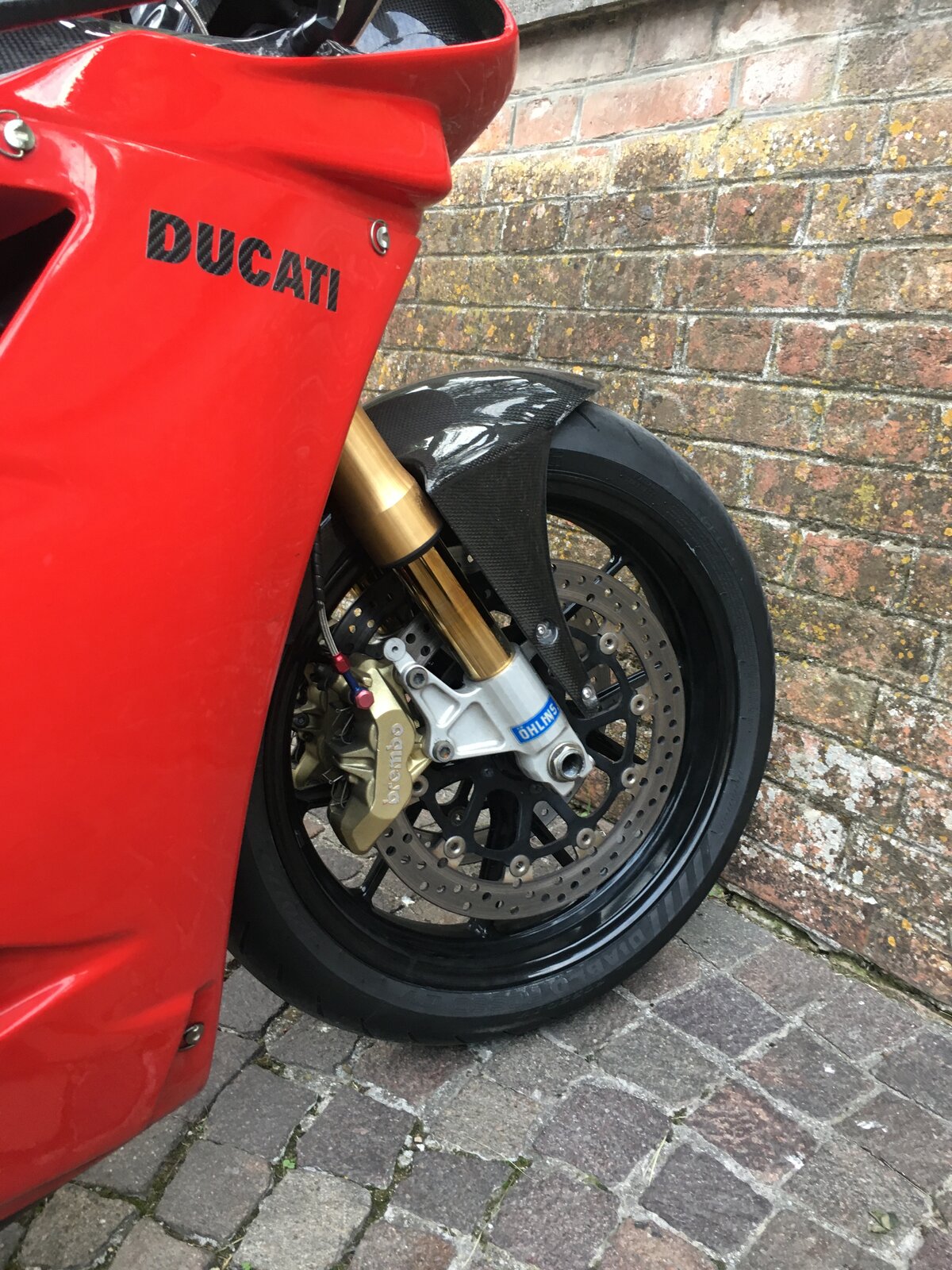 Spotted this one tonight, looks like 848 wheels and discs, rear footrests removed, and I assume home made 748s yoke plaque also are they 50mm pipes? Low miles