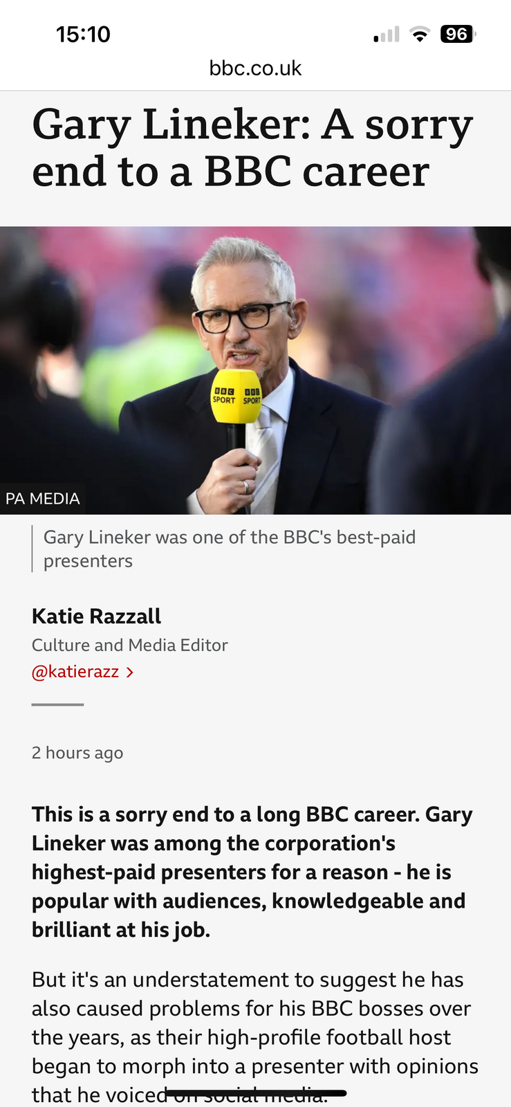 More a sorry end to what the BBC’s become than anything else. GL will be on the right side of history.