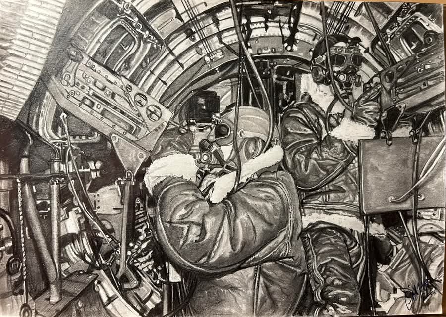 Incredible, how he managed to keep a steady hand whilst on a mission somewhere over Germany with flak and aircraft trying to bring the plane down and all wrapped up against sub zero temperatures.