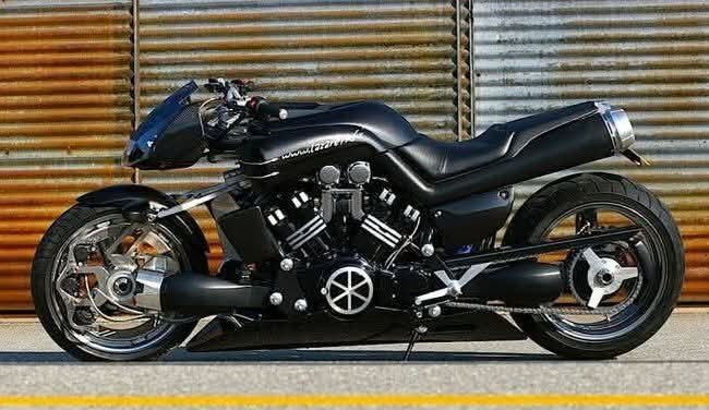 V-Max motor converted to Chain by the look of it. There used to be a couple of kits available off the shelf to do it as the standard shaft really restricts the width of rear wheel/tyre you can use.