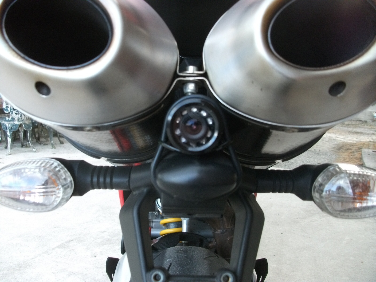 Yes I did this on my 1098. It was a real life saver at times. I only bought a cheap wired system off ebay for about £40. You can get the wireless ones which may be easier to install rather than messing about running the wires from the rear camera to the screen up front. I mounted the camera just above the number plate light. There is no ideal place to mount the screen I had a dark tinted screen on my bike which I drilled a hole through and mounted the screen on the backside just above the dash (see last pic). The dark screen also prevents reflection when it's sunny. I left my mirrors on aswell as it all helps. You don't get HD quality but it's good for keeping an eye on what's sneaking up behind you in that blind spot, which lets be honest is a huge blind spot. It's especially good for spotting other bikes coming up behind!.