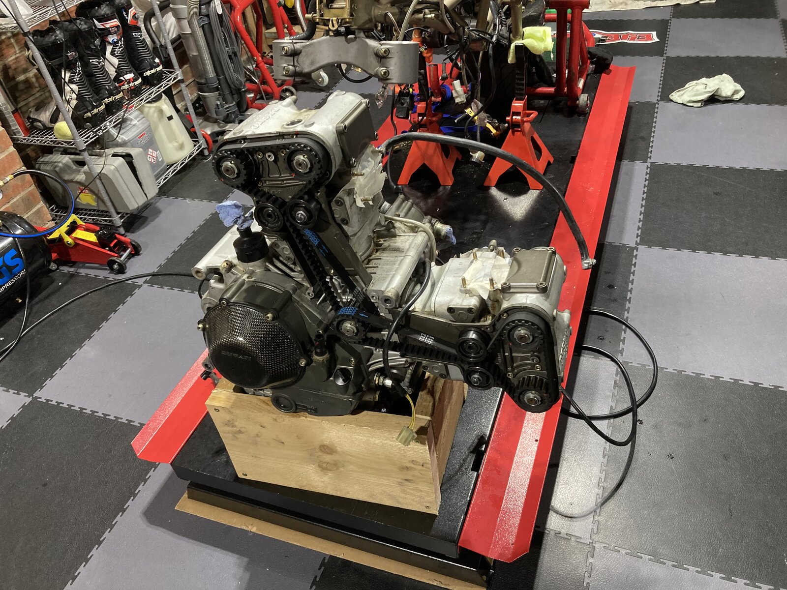 Thank you…. I will be getting the correct TB’s…just a pain. slight change of plan as I have now dropped the engine out….forks out. only the rear wheel and shock are connected. The great news is that the swingarm bolt came out no bother whatsoever. made an engine stand from some scrap wood too…