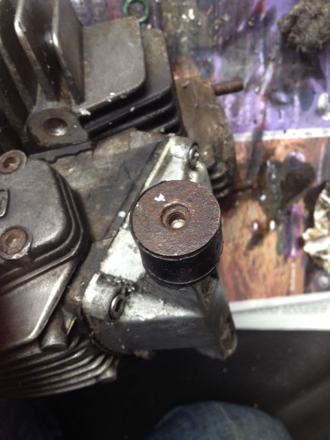 Oh dear, you have made a mess of that - maybe you should have taken the part to a local machine shop and got them to drill it out for you... However. All it is, is a means of mounting your oil cooler. Nothing too critical, no moving parts - it's not even terribly visible. Time to think outside the box perhaps?. How about bonding your cotton reels direct to the aluminium?? It looks as though there may be space for a nut beyond the threaded section of the casting. Maybe a machine shop could drill right through the broken off bit and casting so you can put a nut on the end of a bolt that goes right through a drilled out cotton reel. One bodgers way to do it would be to drill several small holes all around the broken off 'bolt', preferably contacting it, so you can break it out, Then you can fill and bond your new cotton reel/s in place with chemical metal. You could also do this after a machine shop has drilled out the old stump, for a much neater solution. Probably best to stump up for another casting though, maybe s/h from ebay? Come to think about it, are there not high-level and low-level mounting options for these oil coolers? Maybe that's worth looking at. There have to be all sorts of solutions... ps I think I could still drill this out. The metal is not exactly super-hard - all it needs is a sharp drill-bit, a steady hand and lots of patience. However, judging by your efforts so far, I'm guessing that patience may not be your strongest attribute...