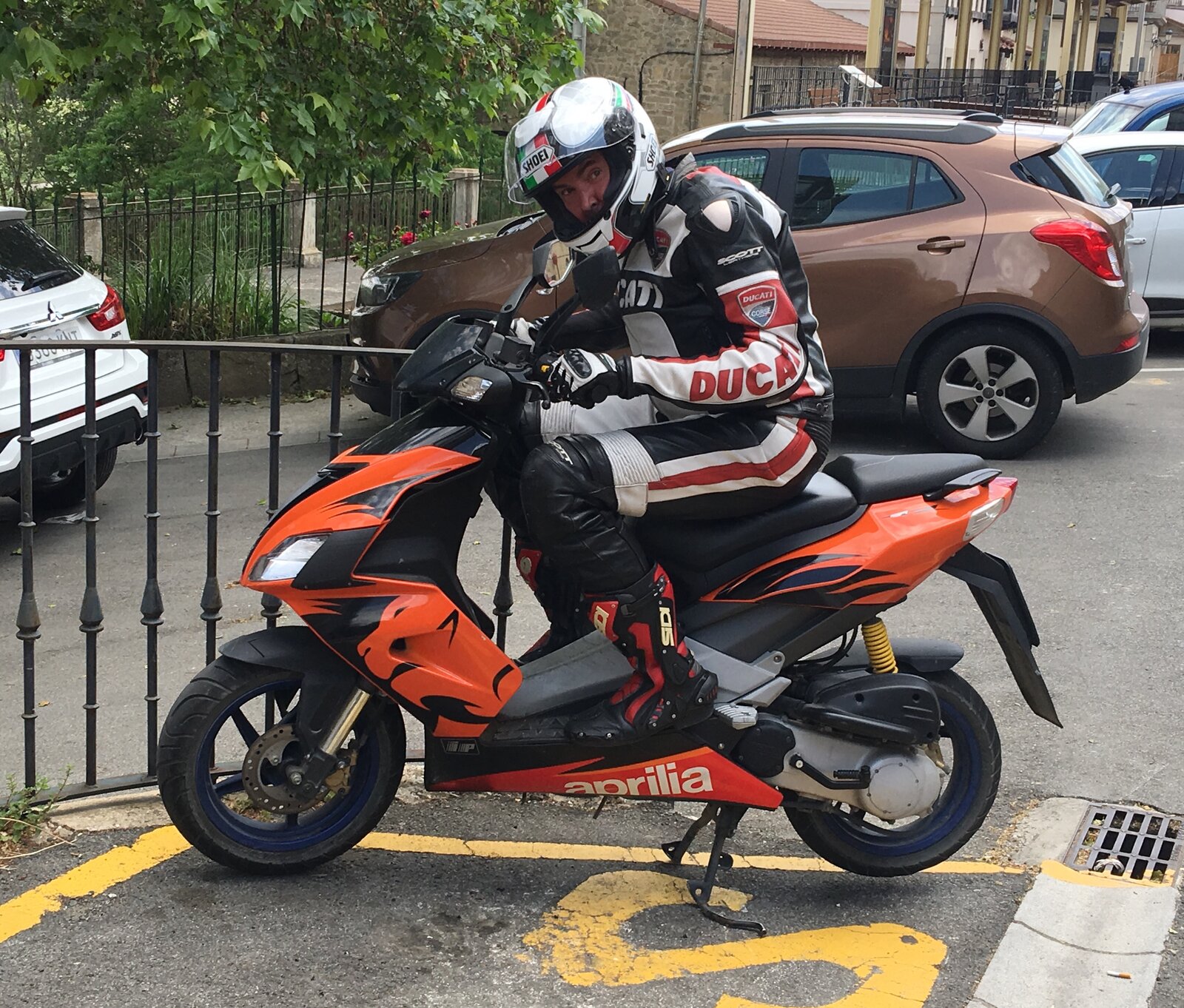 Hit the Road Jack. Sorted. Another story. I didn’t want to do Lisbon on the bike, we’d thought of Casais but decided on Sintra, a historic town near by. At a coffee stop on the way there was a Tv report saying Sintra was shut to traffic for fear of fires in the heat wave. Plan B. Ok we’ll try this nice looking little port just south of Lisbon called Setúbal. To be honest, when we got there it wasn’t nice but the hotel staff were. They let me park right outside the door, which of course I loved. Good fresh fish on the tatty sea front, bed and up early, ready to head up towards Porto or into the Douro valley. It was 8-ish and I’d got the bike loaded, we’re good to go. I thought I’d check the tread and squaring of the rear tyre and oooh, there’s a little stone trapped in the tread. I pulled it out with my fingers aaand out and ooout and it’s not a stone it’s a cable clip complete with nail and oh shit it’s gone right through. Not only that the tyre is completely flat but on its main stand it didn’t show. Bum’olee! Ok decision, do I repair it with the messy can of gloop that inflates it or plug it. I’ve had that spray stuff spread itself all over the rear before and I didn’t like it. I’ll plug it, no mess. It’s a Saturday, everywhere will shut at 1. I’ll have to get this sorted quick. No chance. I got the hotel to call around every bike and tyre shop we could find. In the entire place nobody had a 190-55 zr 17. Bum’olee. By 10.30 I’d tracked down a 190-50 17 There was no other choice I’d have to go for it. I’d already rasped and plugged the hole. Unloaded the luggage and deposited Dulcinea in reception. Just in case it hadn’t sealed, it was only at this point I filled the tyre with air from 3 x Co2 canisters and headed off to the bike shop. Everything in Portugal seems to be more expensive than Spain and The Uk. Not only that, they had me over a barrel. €195 for a wrong sized tyre, ouch. I bartered them down to €172 and gave up and went for it. Cheaper than 2 more nights sitting in a hotel in a not particularly nice place. The the guy explained he’d got no fitter so he wouldn’t sell it to me unless the car tyre place round the corner down the road would fit it. Off he went, back he came, done deal. I followed matey round to the car tyre shop and he left me to it. Good job it’s got a centre stand, good job I’ve got a 55mm socket with me. Silencer cover off, good job I have hex keys with me. Silencer off, wheel off. Then somehow the boss man makes me understand and asks me why I’m putting a 50 profile on? I explained it’s all they had so he drags me over to the front window points and taps the window and there.......is a Bridgestone 190-55 zr 17. Unbelievable! How much? €161 Will you take this brand new one in part exchange? No. Don’t blame you. We tried to phone the bike shop to ask for a refund, no answer. So he produces his scooter keys and says off you go, use that. No problemma. So there I am, ripping up the street on this tiny scooter in 30+ degrees heat. Full Ducati leathers, sports boots, full face helmet, fancy ducati summer gloves and the tyre crossways where you normally put your feet. Knees holding the tyre in place, legs dangling off either side. What a picture.