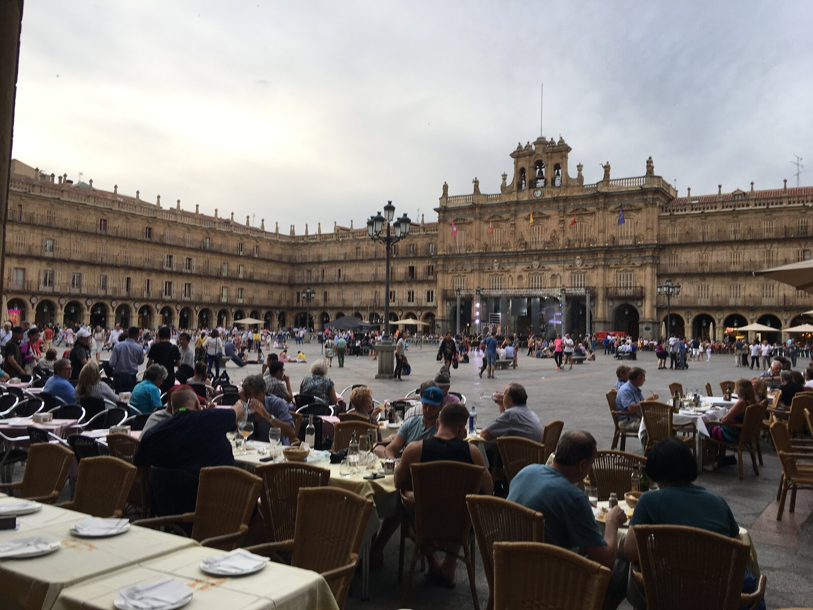 Mad dogs and Englishmen. The bike shop took their unreasonably priced tyre back, relief. The scoot was a hoot, the brakes weren’t. They didn’t exist and you don’t find that out till you need them. Fun. As I pulled up back at the tyre shop I could hear laughter coming from the bike following me. It only made me laugh more. I really did enjoy riding it. Thumbs up to the boss man. Ok. He assured me it was a really really good tyre. Pedro the Cruel always uses them and swears by them. He’s been trying to get me onto Bridgestone’s, while I’ve been trying to get him into Metzelers. It was a god send and it was going on. Game on. Tyre on, balancing done, 230 Newton’s later, wheel on. End can on, end can cover on. Result. Then the guy says to me; €161 for the tyre Ok, agreed, 10 for fitting, 10 for balancing. Total €181. It was a fair bit of work to get the wheel off and there was no huffing and puffing about it whatsoever. I don’t care if he made a good profit on the tyre, he really helped me out. The guy had spent a good hour on it, plus balancing. Plus he’d loaned me the mean machine. I refused to pay him what he asked for fitting....on the grounds it wasn’t enough. The tyre was expensive but you have to bear in mind, probably not expensive for Portugal and less expensive than the other incorrect tyre. Plus the guy had saved me staying 2 more days in a town I didn’t want to stay in. (Now that I convert it into Sterling it wasn’t that bad after all). I bunged him €200 and everyone was happy. I’d never have chosen a Bridgestone but at least I won’t have to rip it off as soon as I get home. I went off happy into the midday sun to pick up Dulciea del Toboso who’d been sat-about in Setúbal. Luggage loaded, buffs soaked in water, we set off not at 8am, more like 2pm. It was 37 degrees. Back in Spain, Sunday eve in Salamanca, just great. Great stuff. Thanks. Long days in the saddle. More later. Sunday night in Salamanca. What a fantastic place. You can’t point a camera at almost anything here without it looking good.