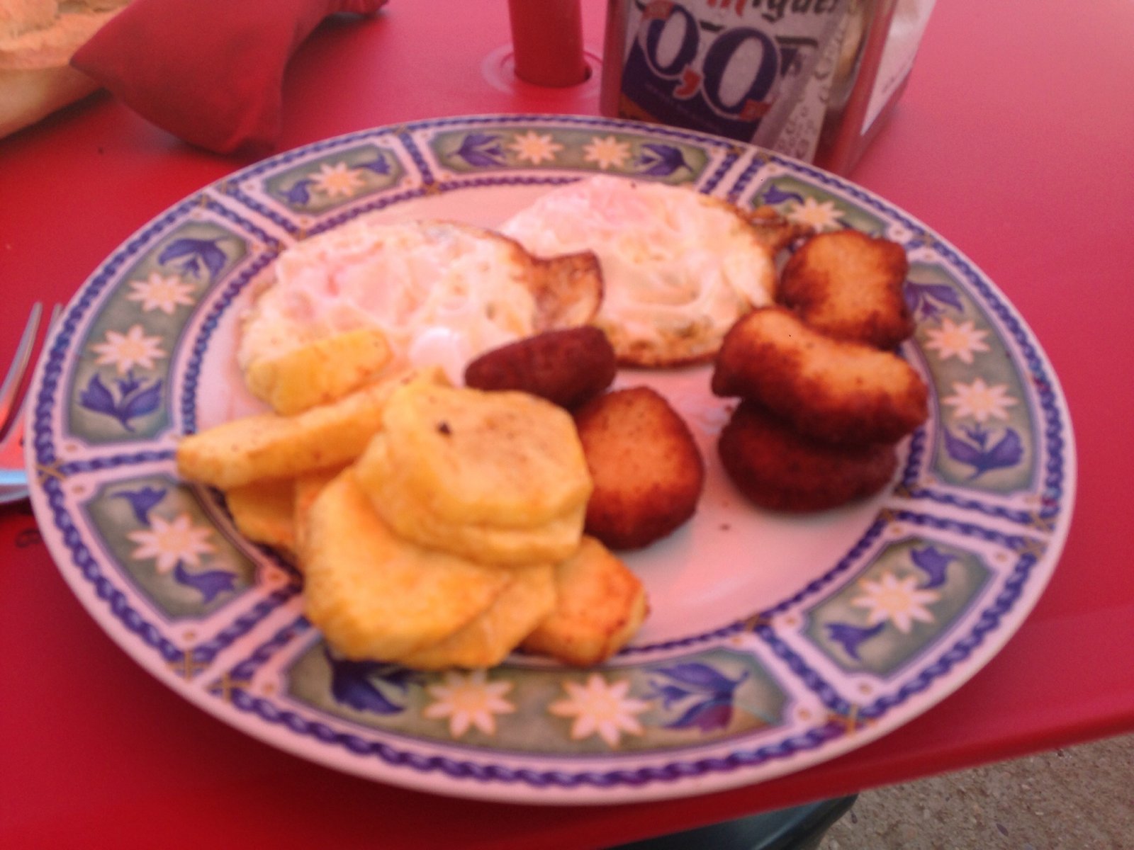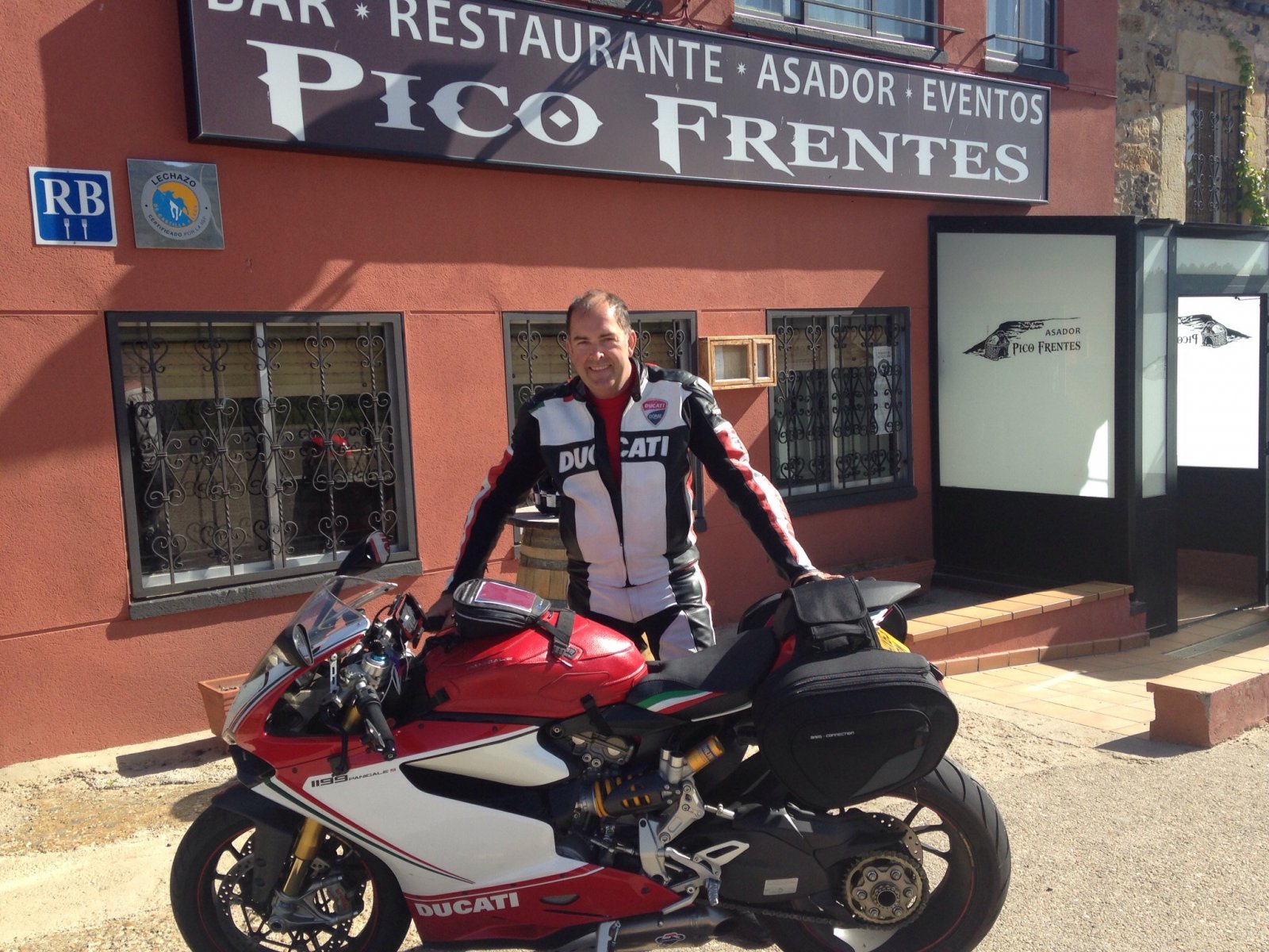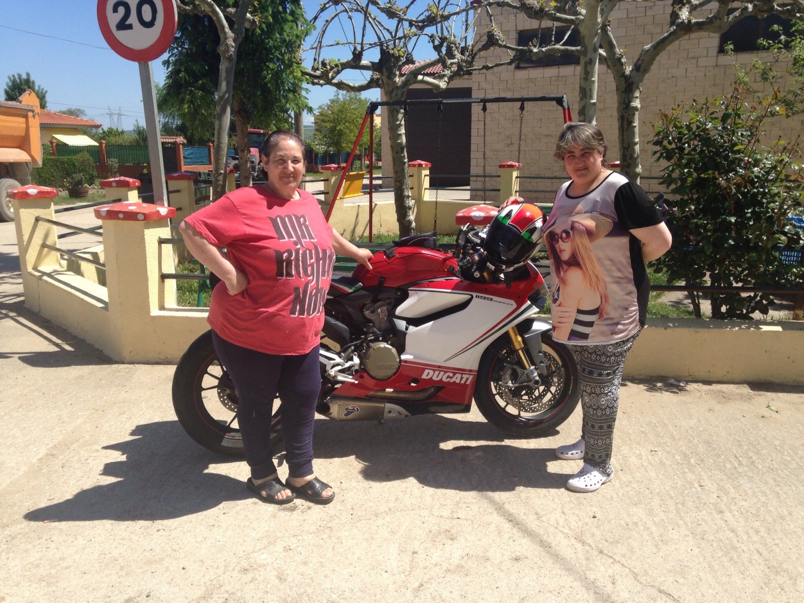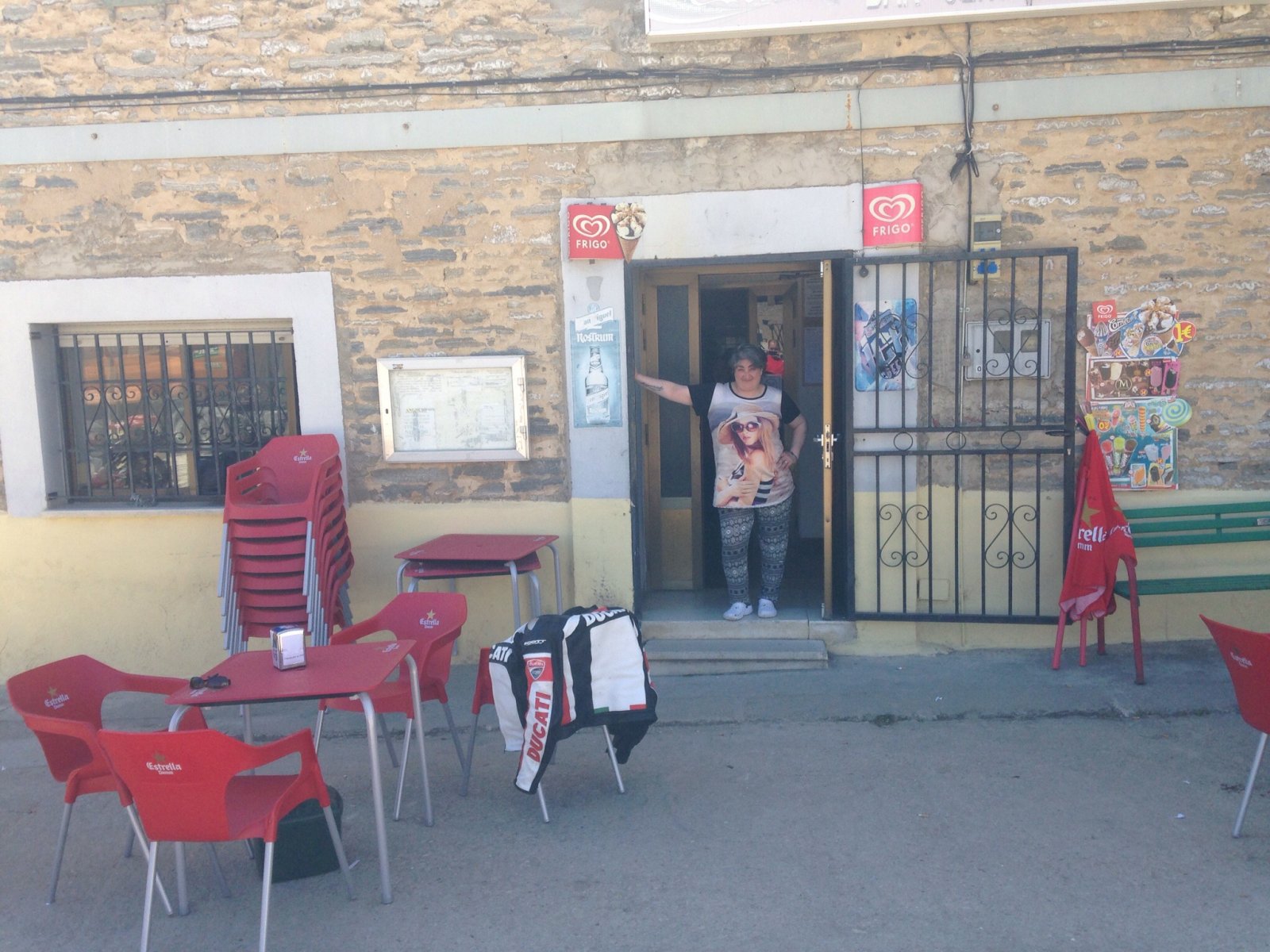 Just one shot. Burbling through a village in the middle of nowhere, I spotted an eatery. I pulled in thinking it would be a really peaceful place to have lunch. Little cafe, in a little village, in the middle of nowhere, perfecto. No, everything in Spain is noisy, they just love noise. It was incredible. Generated by the Spanish music they played and the locals themselves. Groups of them all shouting at each other at the same time. If I wasn't 'Mutt and Jeff' by the Duke, I certainly would be after this. ( Respect to Geoff Duke who had just died). I ordered a San Miguel. "Sin alcohol". (0.0%) "Siiii, sin alcohol 0.0%". The woman behind the bar brought me a small bowl of tapas. They were really tasty slightly spiced chips. I downed them, they were good, really good. So I asked if I could order something else to eat. Well, it was fun. Lady No.1 talked loudly at me for a bit, then went for reinforcements... and came back with Mama. Of course she was short and round, much like the first one but this one had even more miles on the clock. Mama decided the best course of action was to shout as loudly as she could at the Italian bloke who was asking for food. Albeit in a friendly manner. It was hysterical. There were a lot of words all joined together, incredibly mixed with bellowing music. The 'Italian Tart' is noisy but these Spanish tarts weren't easily going to be outdone. I managed to pick out two words, I recognise them! Huevos and fritos. Eggs and chips. How English. I'll have to have them. I'd prefer something more Spanish but 'what eva!' "Bueno. Si". As long as it was 'poco'. (Small). "Siiiiii!" I don't like too much to eat when I'm riding. "Italiano, si?" "No..... Inglese". "Ah, Ingleeeesee. Italiano color, y moto Italiano". Mama knows it's Italian, impressive. "Siii, Moto Italiano. Bueno, Du caati. Bueno, scorchio! ...Mi Inglese". "Aaah Inglese, bueno, Du caati, siiiii." Approved like a long lost son, I had to grin. Next, I made the mistake of asking one of the men at the bar how many hours to Santander. This question was duly referred to the whole bar. Everyone joined in. After lots of conversation, lots of arm waving, lots of discussion about trucks and high things, I didn't know exactly what they were, they decided that it would take an hour and a half. Provided, I wasn't driving a truck! "Que?" Provided I went over the top and through the Coll. "Ah bien. Una hora and a half. The Coll, siiiii". The high thing, yes it would be high. And provided I didn't go the truck route. I probably wouldn't do that. "Muchos gracias". Smiles all round, me included. Truck? I went outside in my leathers, shaking my head. I thought it would be more peaceful. It wasn't. The speaker on the windowsill blasted music all across the tables. The locals stood in one another's airspace next to the chairs shouting at one another instead of talking, while standing in one another's air space. Emphasised by lots of pointing and chest prodding, It was a hoot. Cacophony, normal conversation for them. 'The girls' were really friendly and provided great service. The food was very tasty but not too much. I did something I swore I'd never ever do, I took a picture of the dish. The food, not 'the girls'. That came after a Cafe con leche. Following some confusion they understood. I didn't want them to take a picture of me, I wanted to take pictures of them. Check out the T shirts, fantastic. I took this picture and 'as God is my witness', this is what happened to my phone. It's never done it before or since. Incredulity...smiles...giggles...laughter. Dead camera, hysterical! You can't make this stuff up. Just one shot and the blue screen of death. I turned off the phone and re-booted. It worked! Move over David Bailey, go snap some twigs. I've got a session with three supermodels, a working camera and I'm going to enjoy it. What a great lunch. I just have to go back there some time.