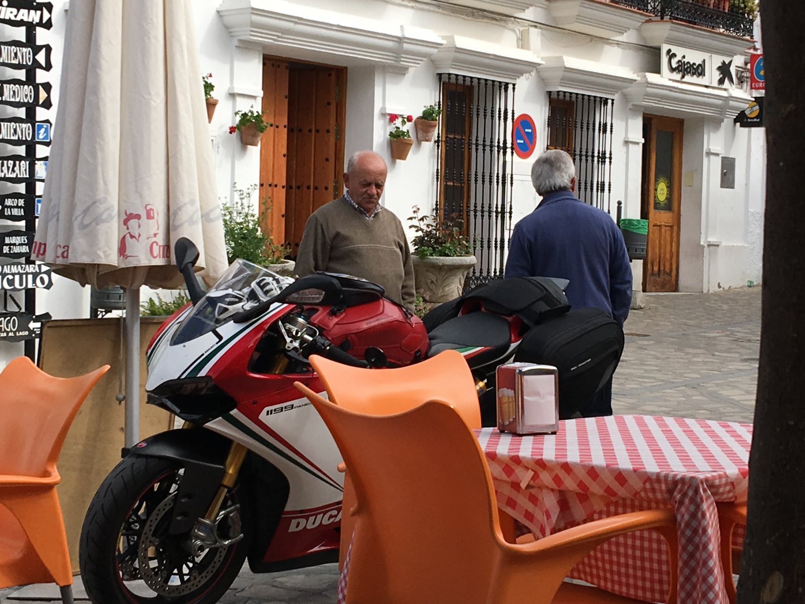 They were locals out for some fun. Not only did they know where to have it, they were having it, rapido! One of them ran really wide into our path as he tried to catch the other round a long right hander, our left. We all had time for a bikers wave though.