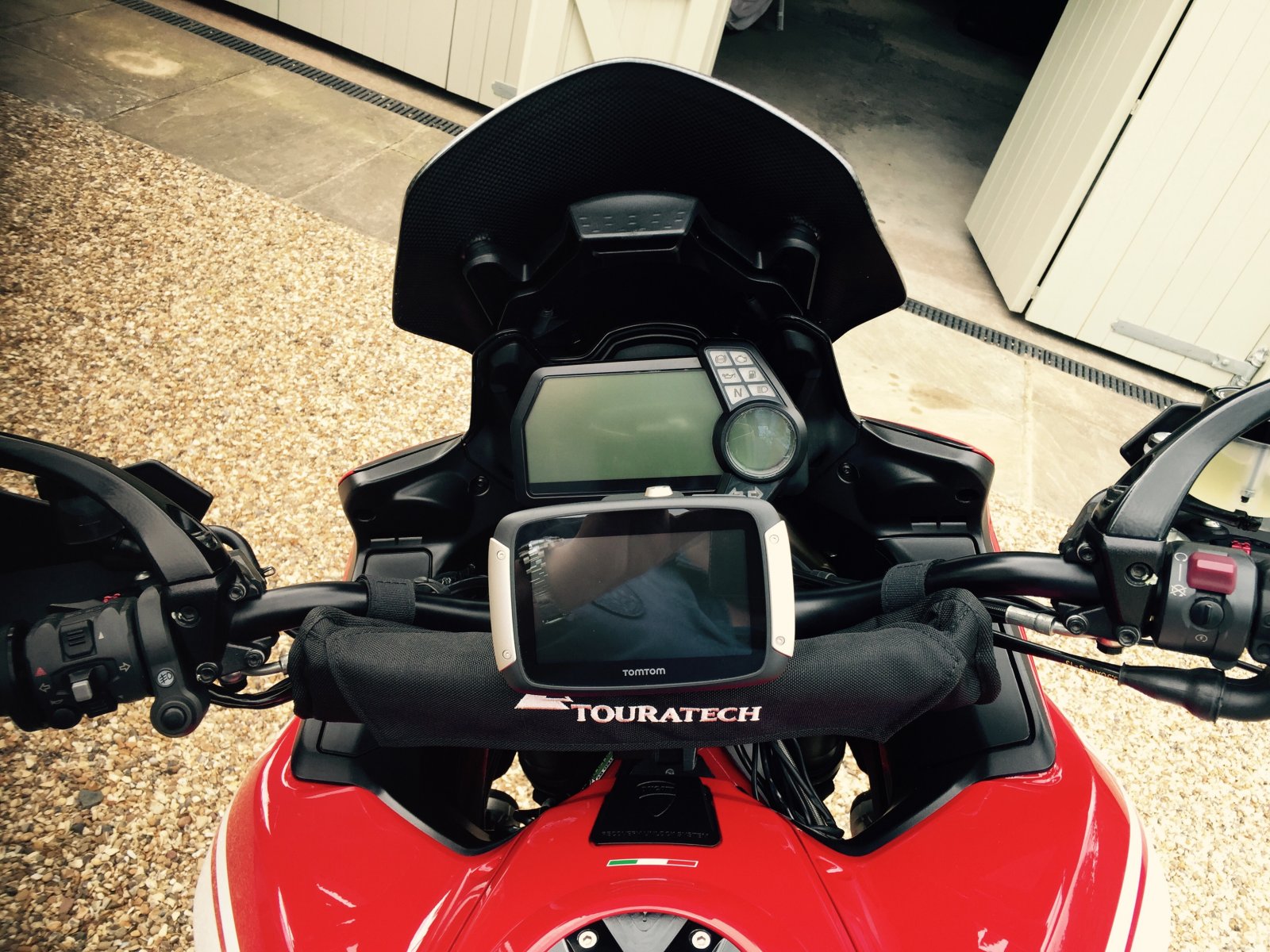 I did a lot of looking into this too and went with garmin Zumo 590. Has a wealth of features above the Tom Tom. Means I can control my music and phone in one point. No stopping to answer calls or skip tracks as well as informing me where to go. Unit is simple to use and understand. Currently it's mounted using the supplied kit but I struggled to get it square on and so I will switch to navihalter wen I get bk from my trip, it's usable where it is but not user friendly.