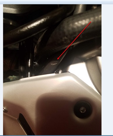 I was cleaning my 1260S and removed the skid plate. When I did, I noticed that the upturned edge of the plate was rubbing pretty harshly on a hose, and has cut through the rubber to the metal screen underneath. My current plan is to get the grinder and cut the skid plate back, and probably get the hose replaced. I just wanted to post it here so others can watch out for this.