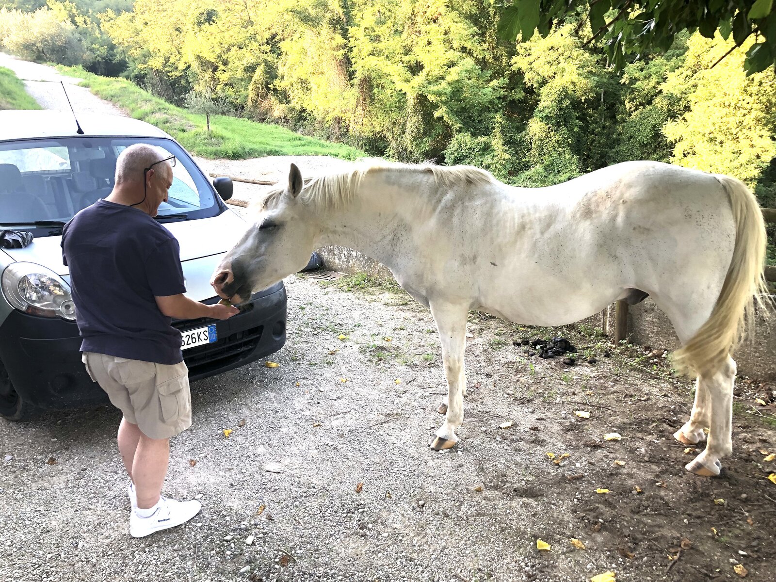 Day 3 - Bolzano to Udine over the Dolomites, 220 miles.. Fantastic weather for it today and loads of other bikes about, 90% of which were BM GS’s! Instantly recognisable shape of the Dolomites Some of the valleys were just chocolate box pretty Had a lush coffee and apple strudel in here, lovely looking building.. Then we went over the Passo Duran,…wait for it .. Bike swerved to a standstill at the restaurant at side of road,..I suppose it was just “ THE REFLEX” .. I was ready for something to eat mind because I was “ HUNGRY LIKE THE WOLF” All the cows in the field had bells on ( because their horns didn’t work ) and they didn’t half make a racket.. Thought I’d take a couple of pics as I wanted to get the “GIRLS ON FILM” Right that’s enough of that sh1te From the cooler air of the mountains it started to get really hot on the afternoon, saw 28c on the temperature gauge, on our last stop for fuel, my mate who booked the hotels said that tonight’s one was a little further out of town, so perhaps we’d just eat in the restaurant tonight,…the warning bells should have gone off then really ?? About 10 miles away from anywhere, we rocked up at this place,..a family run winery… Middle of nowhere,..if you like peace and tranquillity..fill your boots My mate here only has two faults,..he’s a bit of a short arse..and, he has a bladder the size of an egg cup so he’s always the first one who want’s to stop for a pee,…so he’s earned the nickname of “ The incontinent imp” Felt right at home here with others the same size Then he had the horse eating pears out of his hand., Anyhow, we asked the nice lady if we could eat at about 7:30pm.. “We don’t have a restaurant, it’s only B&B” came the reply.. ! Okay then, we’ll just have 8 beers please.. “We don’t have beers, just the white wine we make “… !! There was nearly a riot!! One of my mates said “ have you brought us to a fekkin health spa or what ?? The nice lady ran us into the nearest town ( 2 trips bless her as there was 8 of us, so we gave her a 40 Euros thank you) and she took us to a cracking restaurant where we immediately lowered the tone.. I think they had issues with their portion control because this was just my starter !! Melon and Parma ham, with a full buffalo mozzarella about the size of an orange!..wow! Followed by a sirloin steak with wedges, washed down with 3 beers,…40 Euro’s the lot ,..how do they do that ??? Great days riding, just got so hot this afternoon and would have killed for a beer as soon as I got off the bike, but it all worked out okay in the end Roll on tomorrow for more of the same !