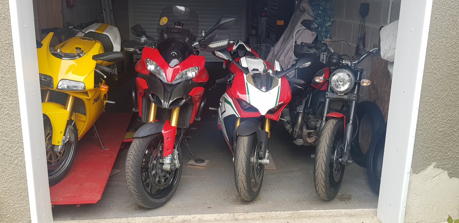 A bit of rearranging this morning, getting bikes out of the house in preparation for dropping them off for service tomorrow and collecting the bikes that are being serviced today. Bit of a squeeze but they just fit The R6 is still in the dining room though Andy