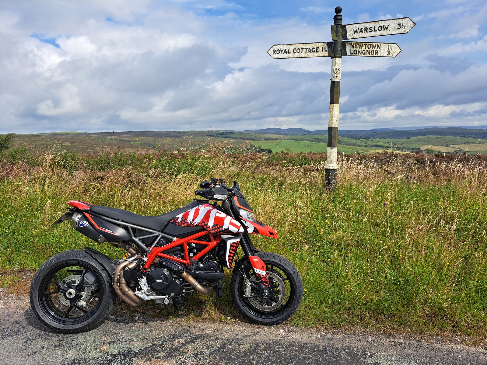 Runout over the Staffs moors and return via the Peak. Started to gel with it and even managed a few wheelies ( poor ones )