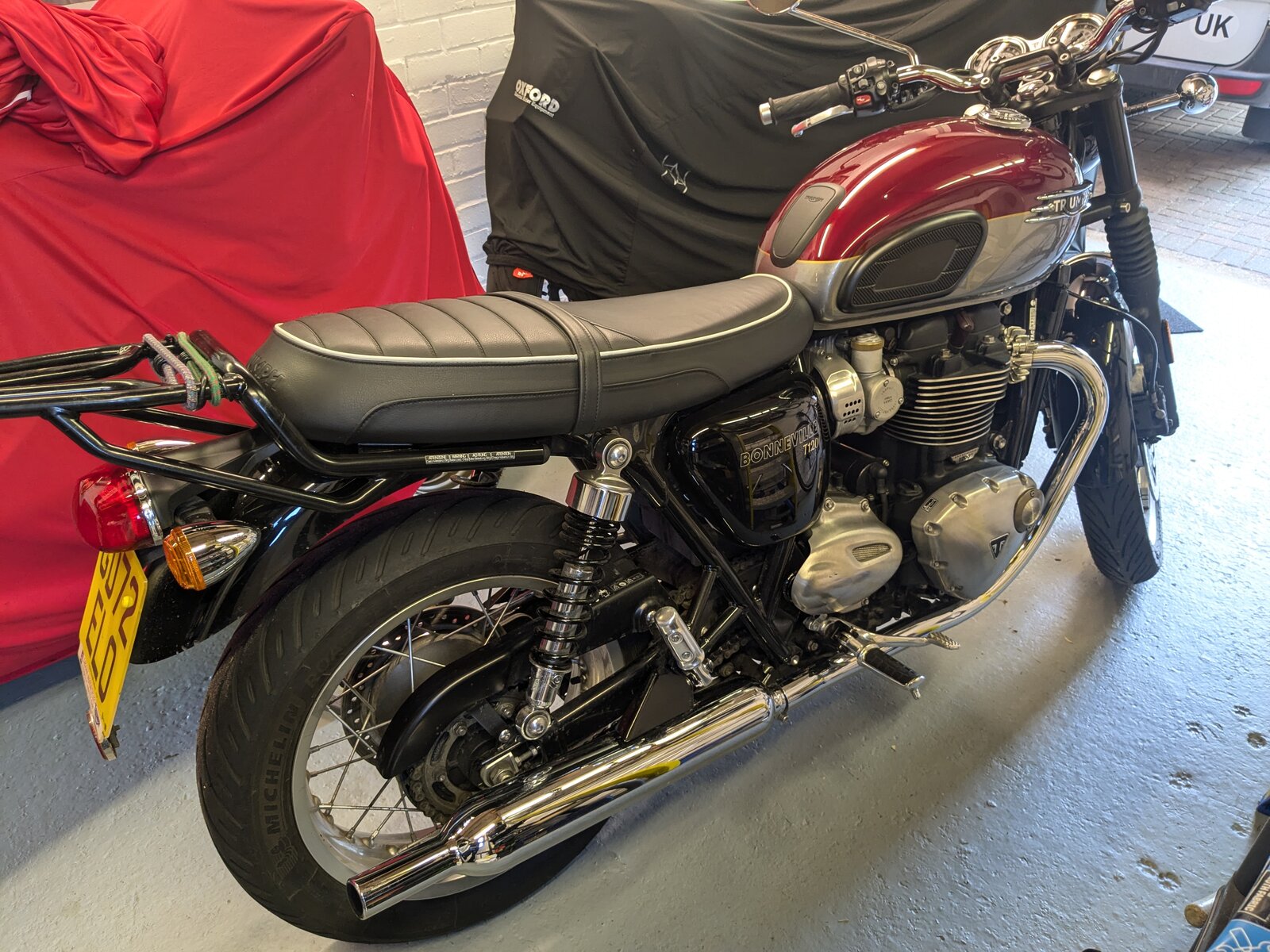 Dropped the SL off at my dad's tonight as he is taking it for an MOT for me tomorrow . Came home on his 1200 bonnie. It's only about 5 miles but it was a nice chilled ride and I can see the attraction with these bikes, it's even got cruise control!