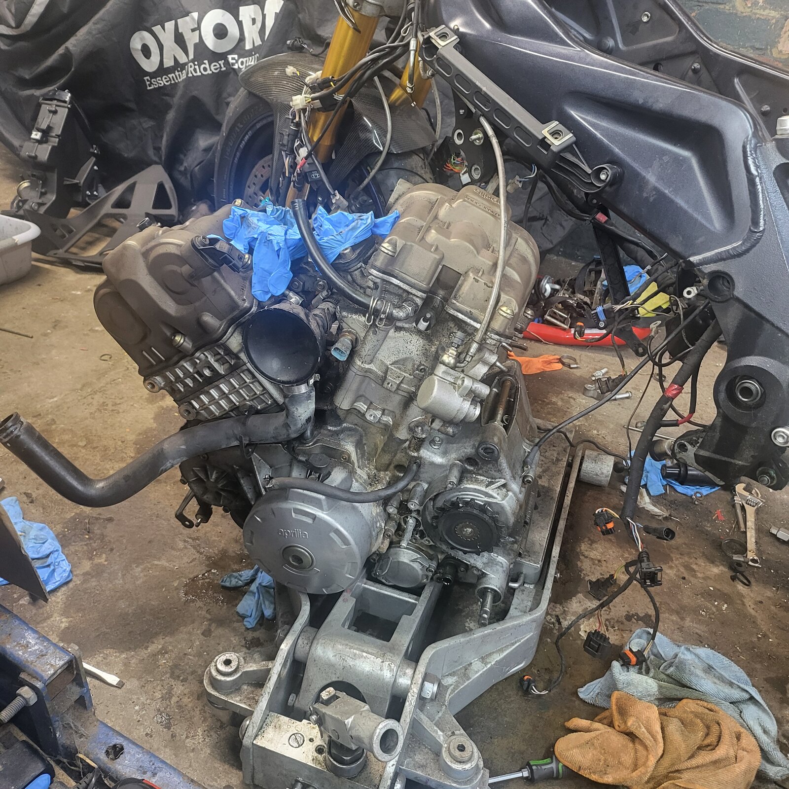 Getting ready to take rsv engine out tomorrow. Seeing as the last person to touch the fastenings was Giuseppe 20 years ago its coming apart surprisingly easily