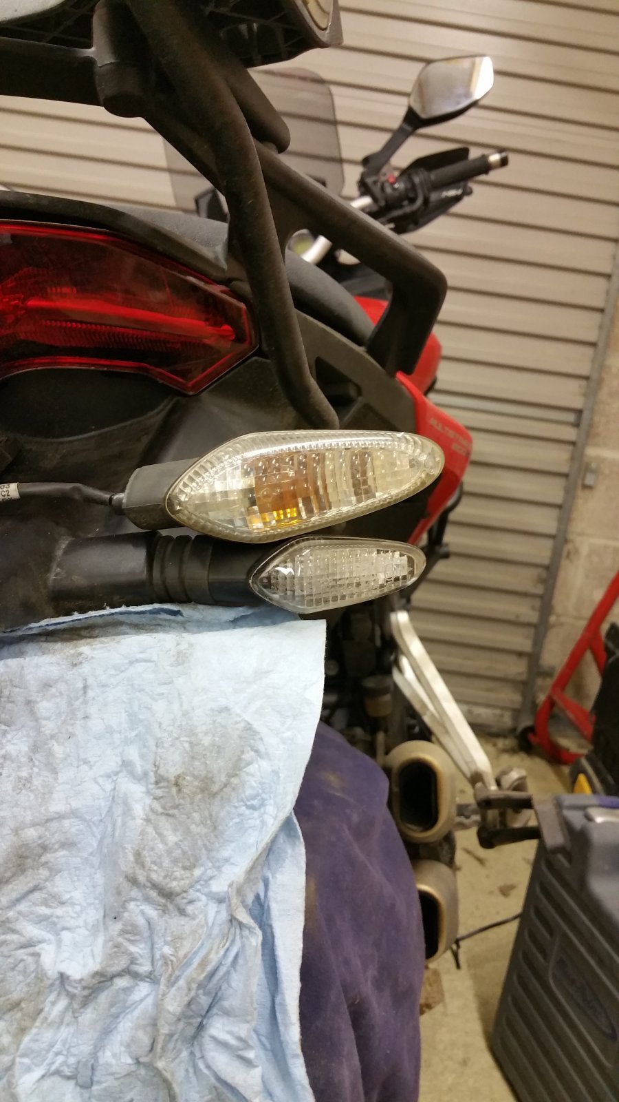Fitted 1199 LED rear indicators to my Multistrada. Simple swap and very pleased. and a quick shot of the comparison. Happy that is also very bright. Andy