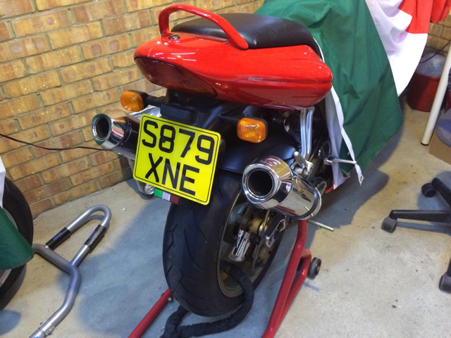 Knee deep in an office refit which seems to have been hassle all the way. Today's cock up - architect didn't allow for pillars in building, so none of the desks fit... After a mega busy day I consoled myself by putting a new number plate and rear reflector on the Ducati. The old one was huuuuge, at least an inch bigger in each direction. Odd when you consider this one is road legal.