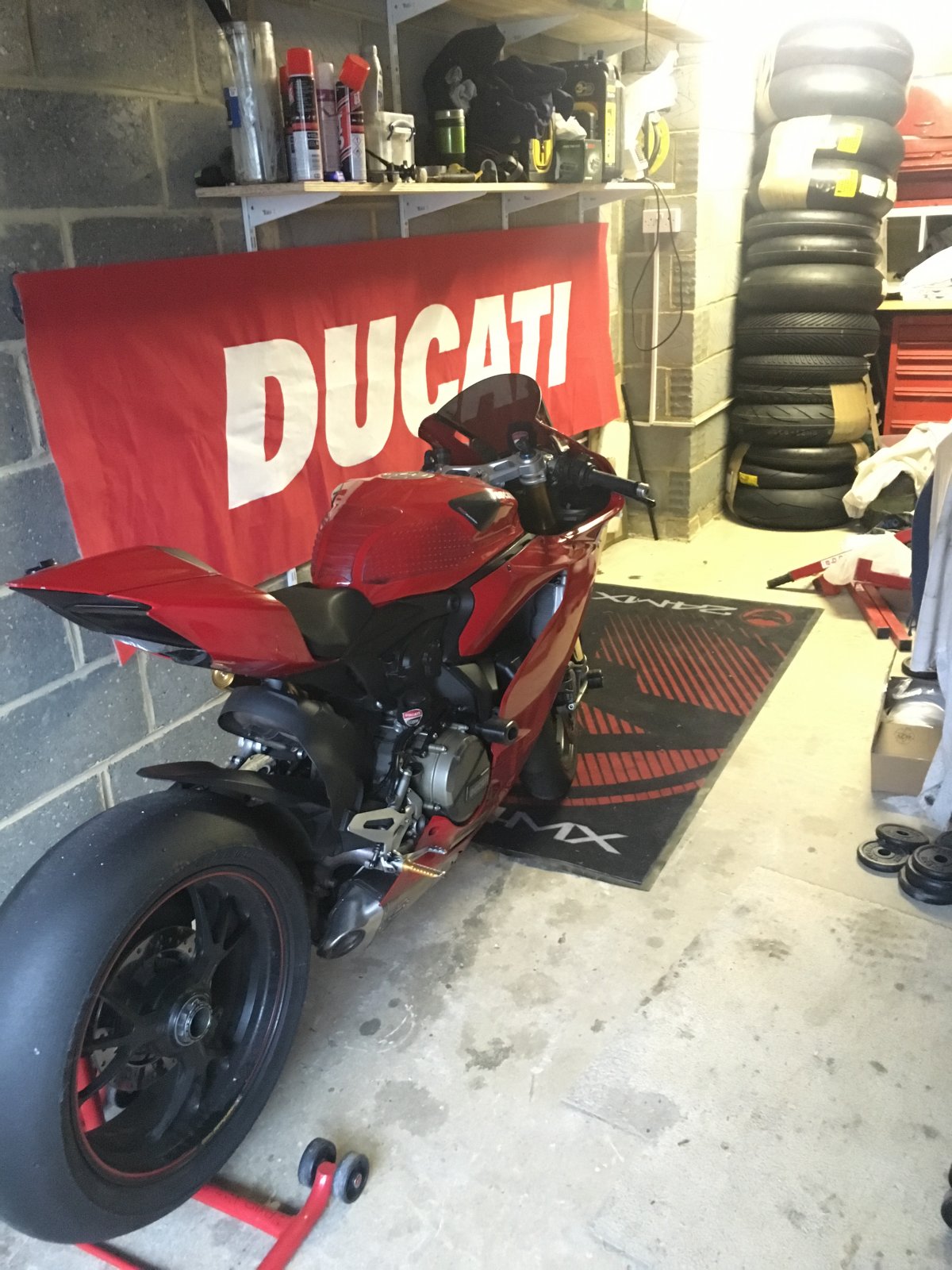 Pretended I had a badass garage with loads of space by putting everything in the road except the Panigale. Made the biggest tower of tyres in the galaxy. Picked tyres up from where they fell and made two less impressive towers