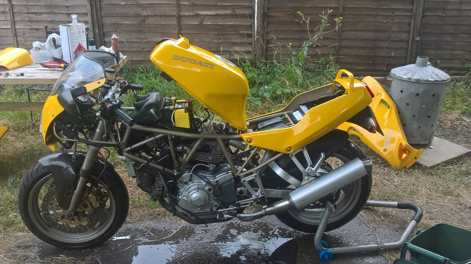 13. WP_20160814_10_04_01_Pro.jpg WP_20160814_10_03_43_Pro.jpg today I got up early and set about finding what the chirping noise coming from the ss was. Had my suspicions that it was the bearing on the pressure plate and it turned out it was. Had a new plate with bearing from the 1098 so 20 mins later all good!