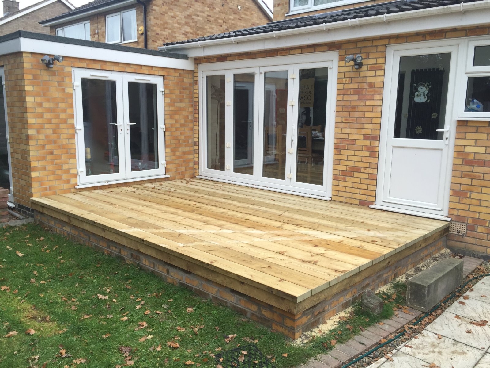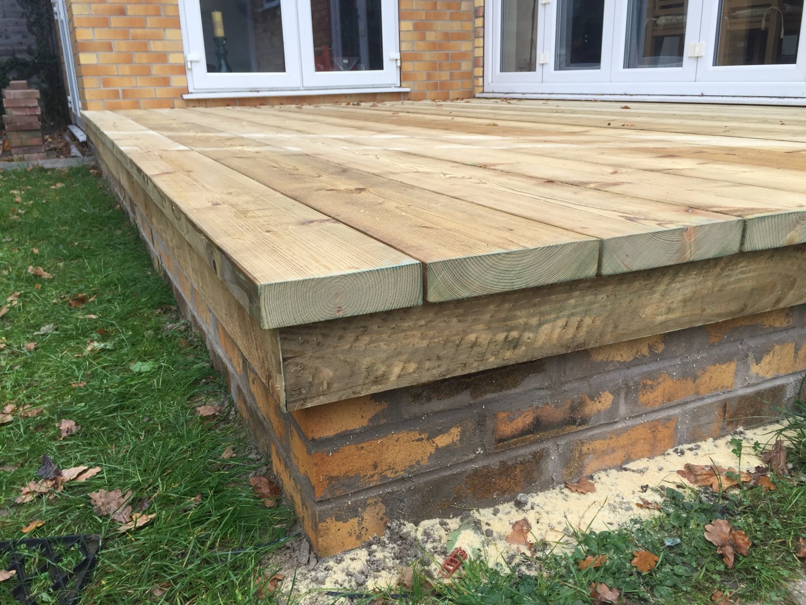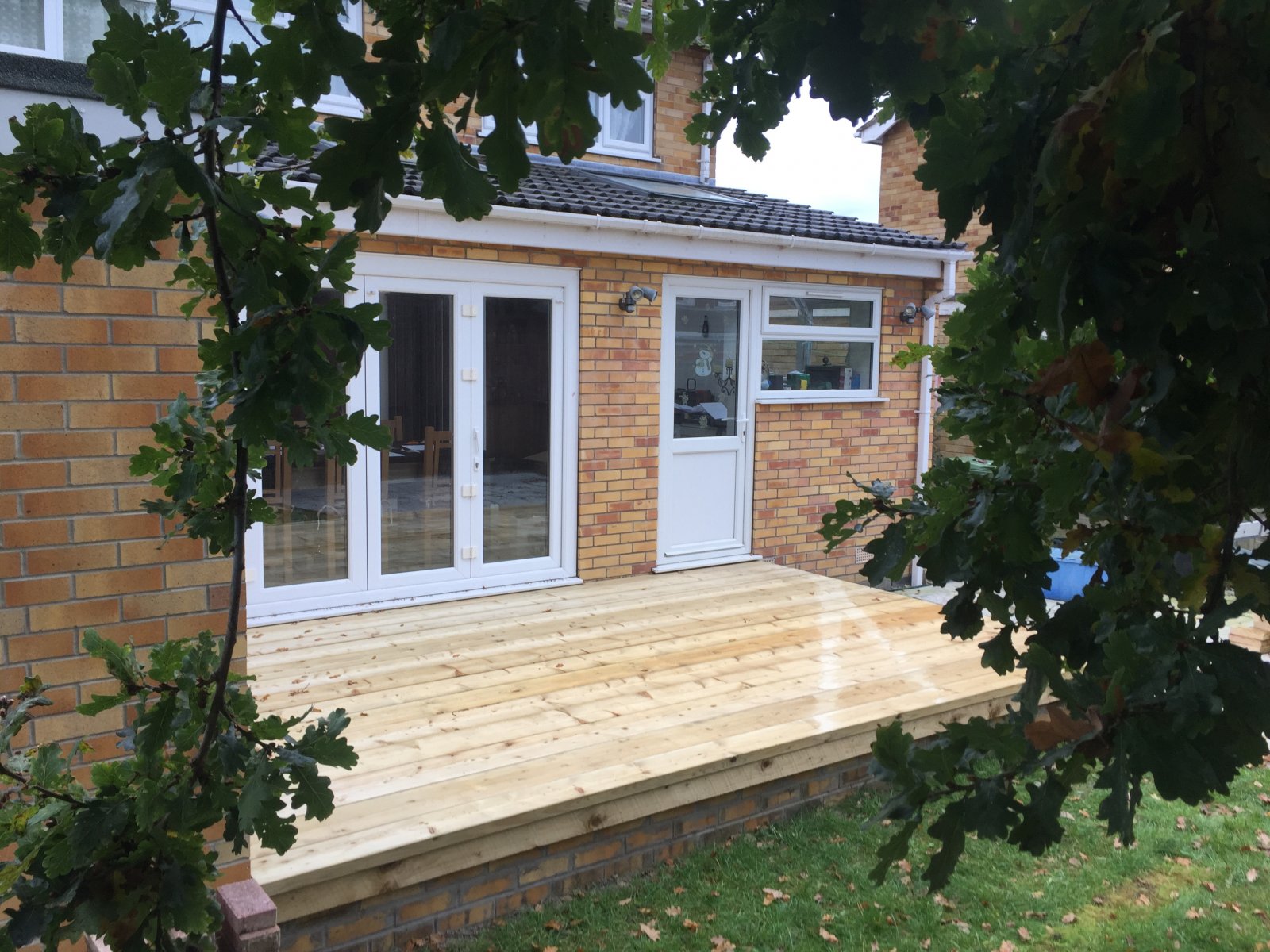 Up early and finished my decking before the rain, used pressure treated 9" X 2" timber for the chunky look with 6" X 2" joists. 4.8m X 3m area. Cost under £600 all in.