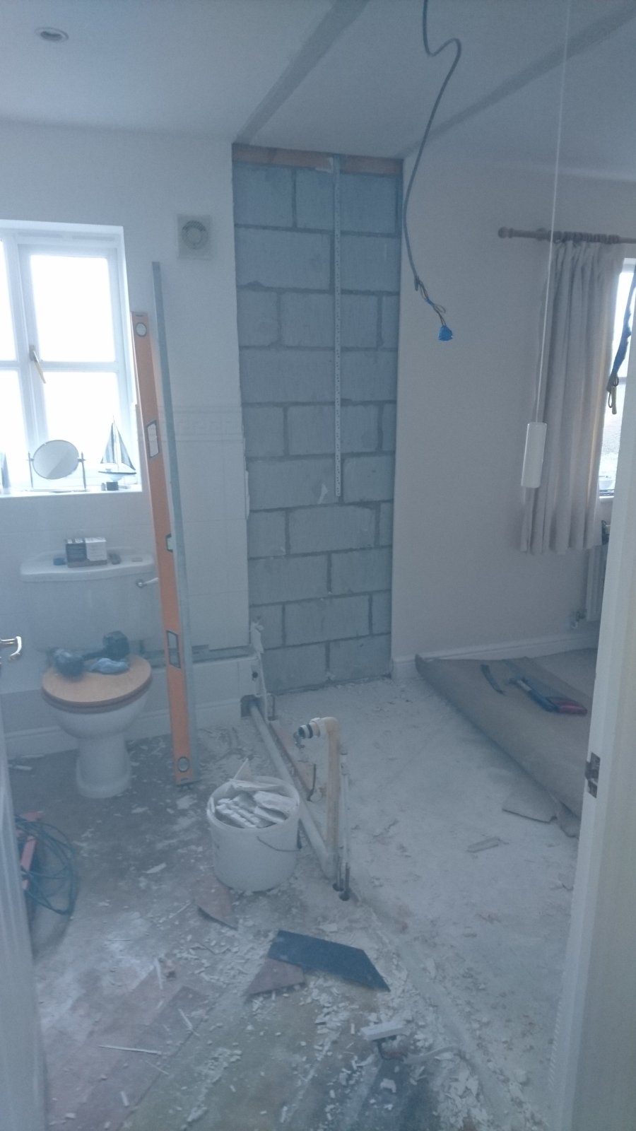 Been working at my daughters home near Burford, started Monday morning remove bathroom suite, remove wall, rebuild and plaster making bathroom a foot wider to relocate sink, toilet and radiator, also replace five other radiators. Pictures a bit out of order. Relocated the electrics as well. Steve