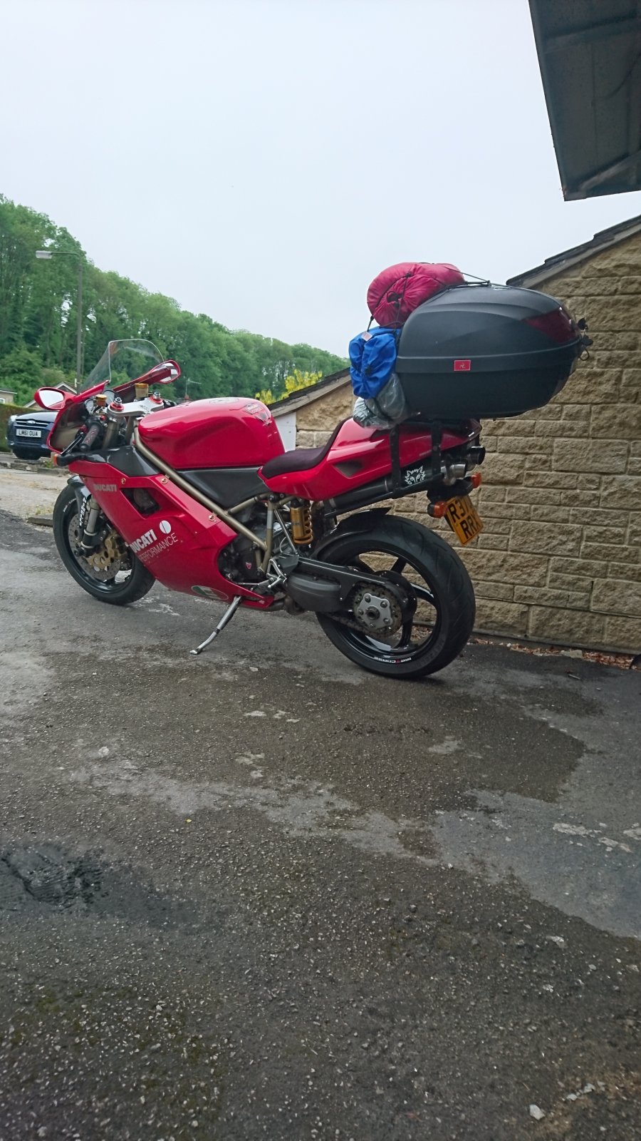 Gentle day in the garage. Cleaned the Sachs rear shock from the Diavel ready for the loft (resisting the temptation to chuck it in the bin), then cleaned the stock Ohlins TTX from the 1098R ready for the Ohlins technician to refurbish. Not sure yet whether to keep it as a spare or just sell it on when its done. After sharing a lunch of posh rolls, Iberica jamon, smoked Ling roe and cheese with Carole, back into the garage and do an oil and filter change on the 1098R ready for Silverstone. Filter undid without a fuss and no evidence of any bits on the sump plug magnet or in the fine mesh strainer in my drain pan. Happy days. Andy