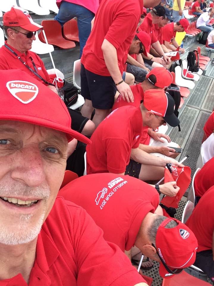 Well today was MotoGP day at Mugello (just in case you've been potholing and you didn't know). It was a fantastic day despite trouble getting parked at the beginning of the day, though a Ducati merchandise stand in the Ducati grandstand Concorse saved the day and allowed me an two other guys to park our Panigales outside their stand. And the even looked after our leathers and helmets whilst we watched all the racing! Big thanks to Jasmin and the team there! The racing was fantastic. Moto3 as always was full of incidents. Moto2 was, for once, exciting too. I really enjoyed tgat race. And the main event was brilliant for Ducati with Dovi getting the win and Petrucci getting third. Vale coming in before Marquez was a bonus too Getting out of the circuit was a nightmare. We eventually had to pull over and get in the shade girl an hour and a half to let the bikes cool down and so we could take on water and cool down. Huge thanks to the two lads from Norfolk who gave me a litre bottle of water to drink and pour over my head to help me cool down! But despite that the whole day was brilliant. Good company, great racing and a superb result for Ducati too. Life doesn't get better than this. Tomorrow we've got a scenic run up the Futto Pass to Bologna where we have a factory tour and museum tour lined up for the afternoon I'll post some pics from today in a separate post.