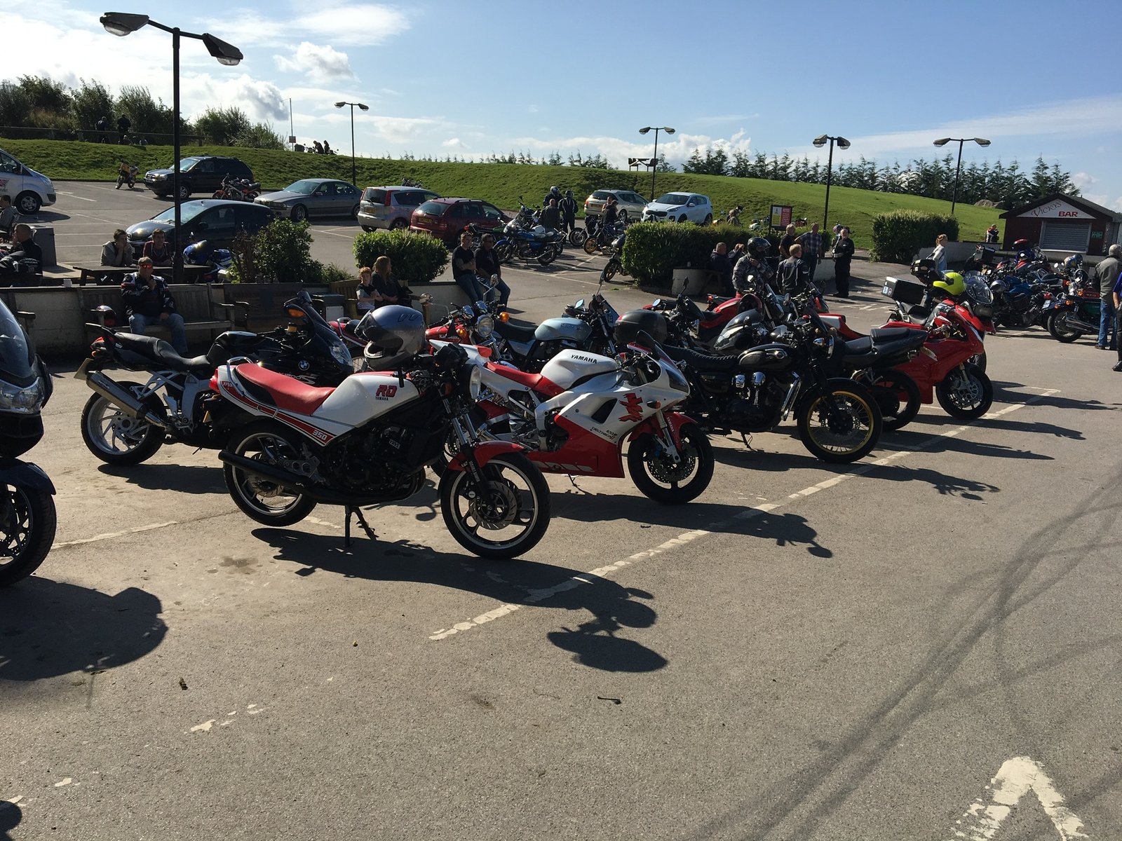 Good ride out today. Tried out the new dash for the first time today. Needed to change the Ti disc bolts back to the steel ones and is reading right now. A few of the smokers on display at squires. A good mix of all the best ones, tzr, nsr, Rg 400 and 4 RG 500s.