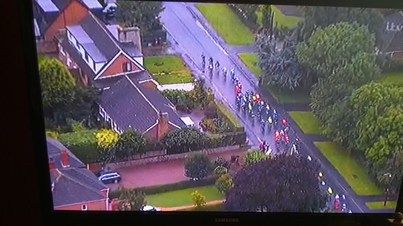 This morning I got the youngest packed off to school for her first day back... Also got the eldest daughter packed off to the Tour of Britain finish line as its her first ever day at work today! Got herself a nice little part time job in a posh coffee trailer that a local lady takes out to events in our area... Then we took root out the front to watch the Tour of Britain come past Mallinson Towers with the other 3 ankle biters and dogs The terrible twins were absolutely gutted that they didn't get their faces on the tv footage though as the helicopter footage was used as they passed our driveway (the rather pink looking one with the grey estate on the drive)