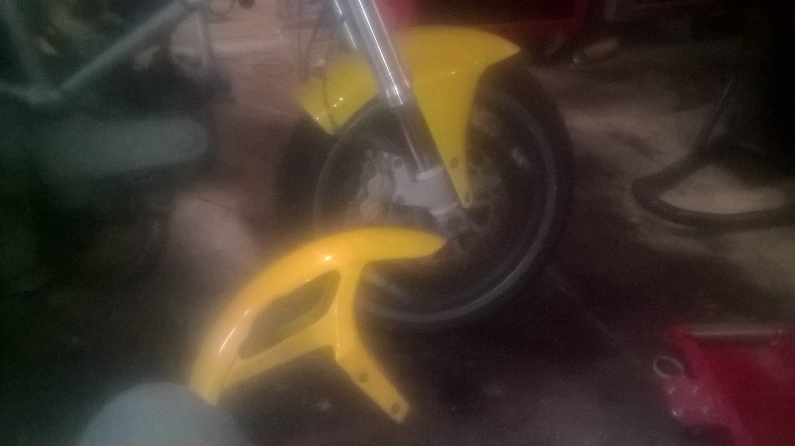 woke early to watch the gp... Went back to sleep after. The had fajitas for breakfast.. Unorthodox I know but blood good. Then a bit more sleep. got up and did chain and sprocks on the lil monster. Gone 2 tooths up on the rear. Also put a 748 front guard on it... Coz I had one and it looks betterer