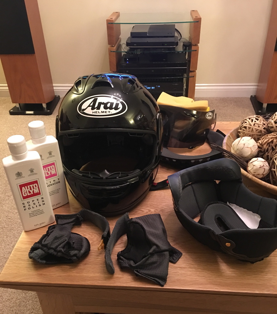Today, I polished my helmet. . . . . I stripped it all down yesterday, washed all the internals and the helmet itelf. Serviced the visor mechanism and gave it a good buffing and waxing. Right, I'm off out to deliver some Milk Tray.