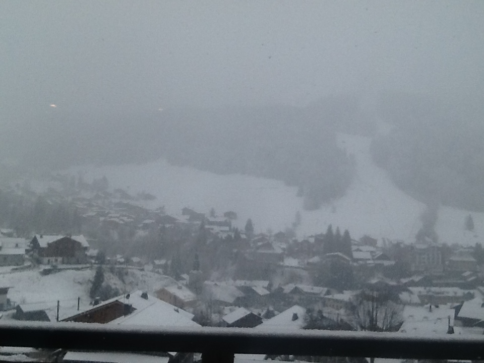 It's dumping. Visibility may be getting better but I think that today may be a lazy day as tomorrow is promising to be a bluebird again.