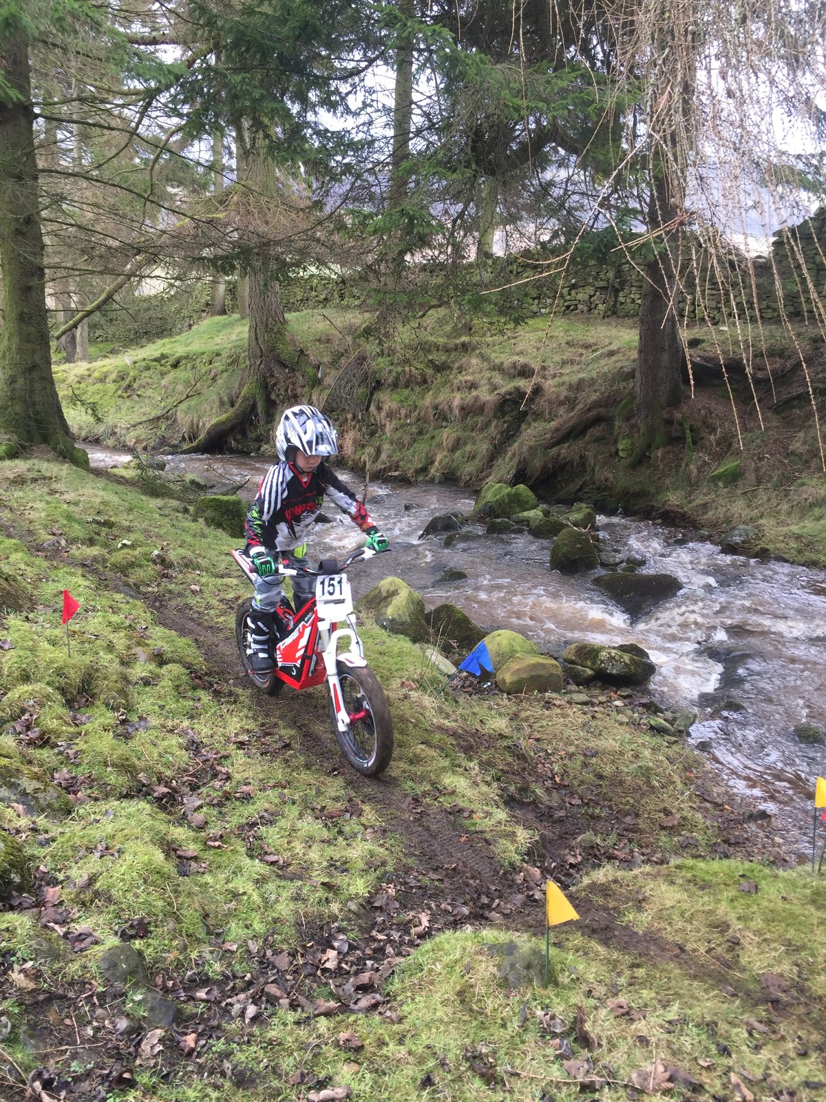 He did the junior course and cleaned eight sections Jim but the water crossing was a bit too much for a first timer hence my wet feet !