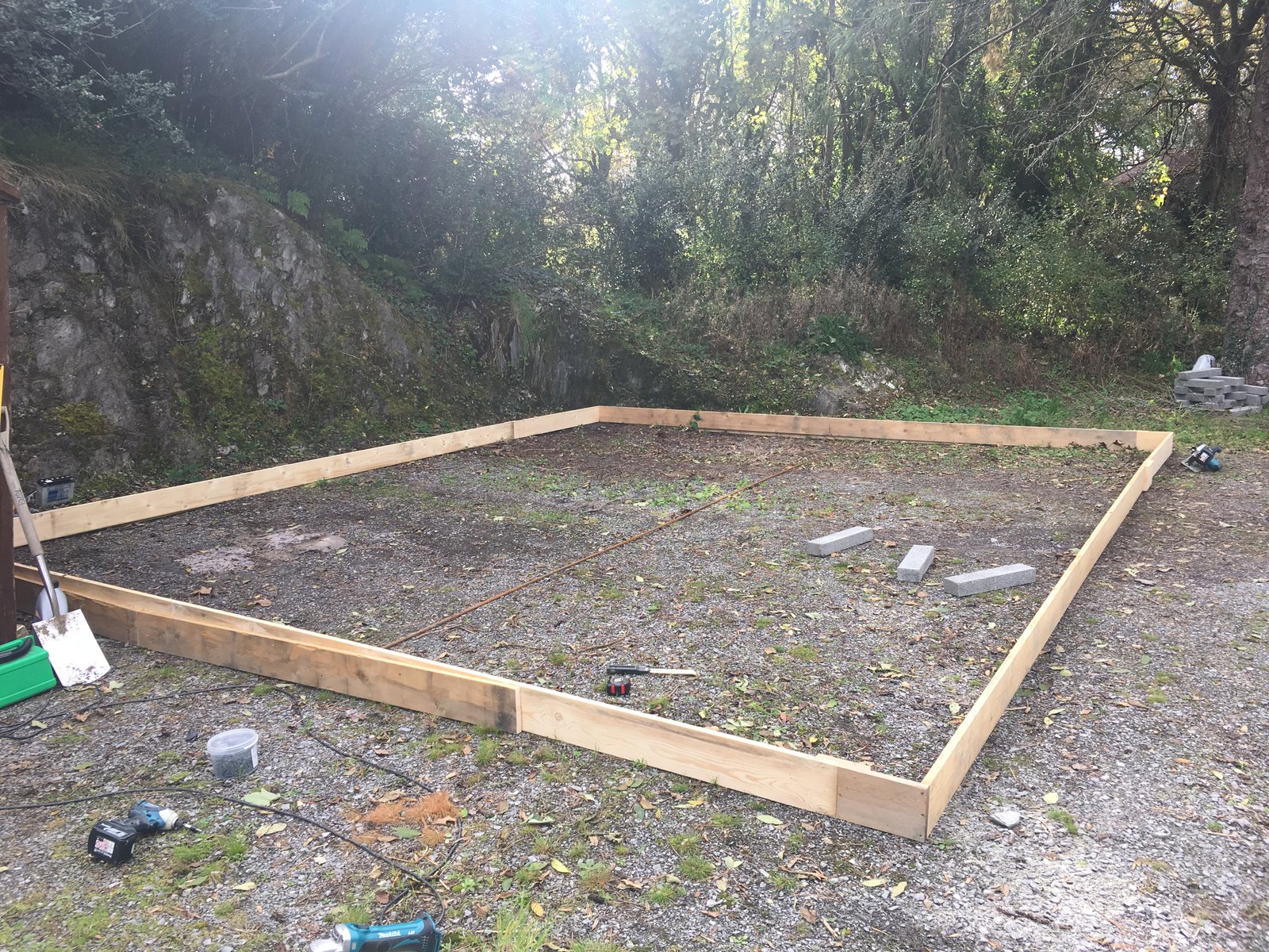 Not far off, 6x5 actually. The concrete is coming Friday morning so earlier that day I’ll be setting out plastic DPM, blocks and rebar mesh. I can’t do it before in case it rains and becomes a paddling pool. Also there’s so much dew in the mornings at present I’d still probably have 1/2 inch water in there if left a couple nights.
