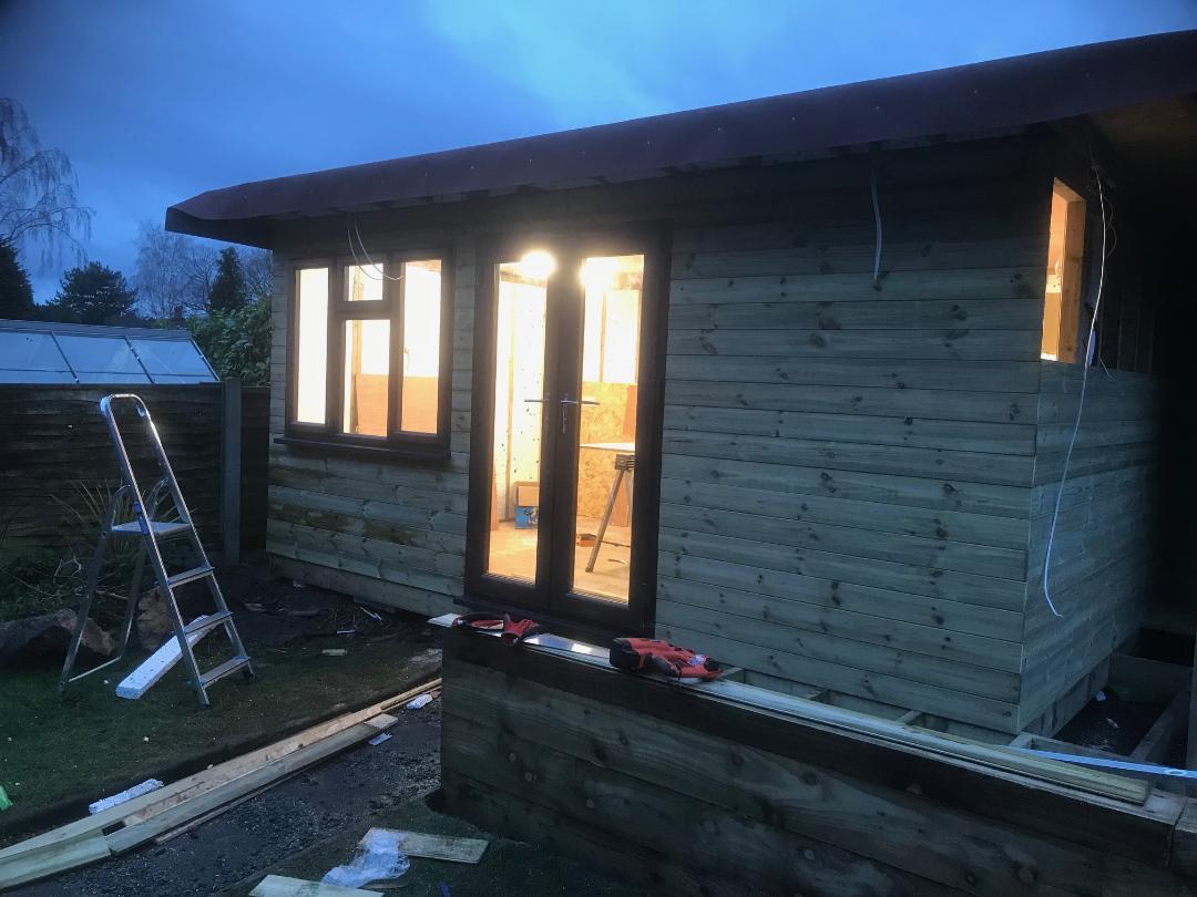 12. Got the doors and window fitted and the electrics sorted. Tomorrow the alarm is going in and hopefully finish the insulation and internal boarding.
