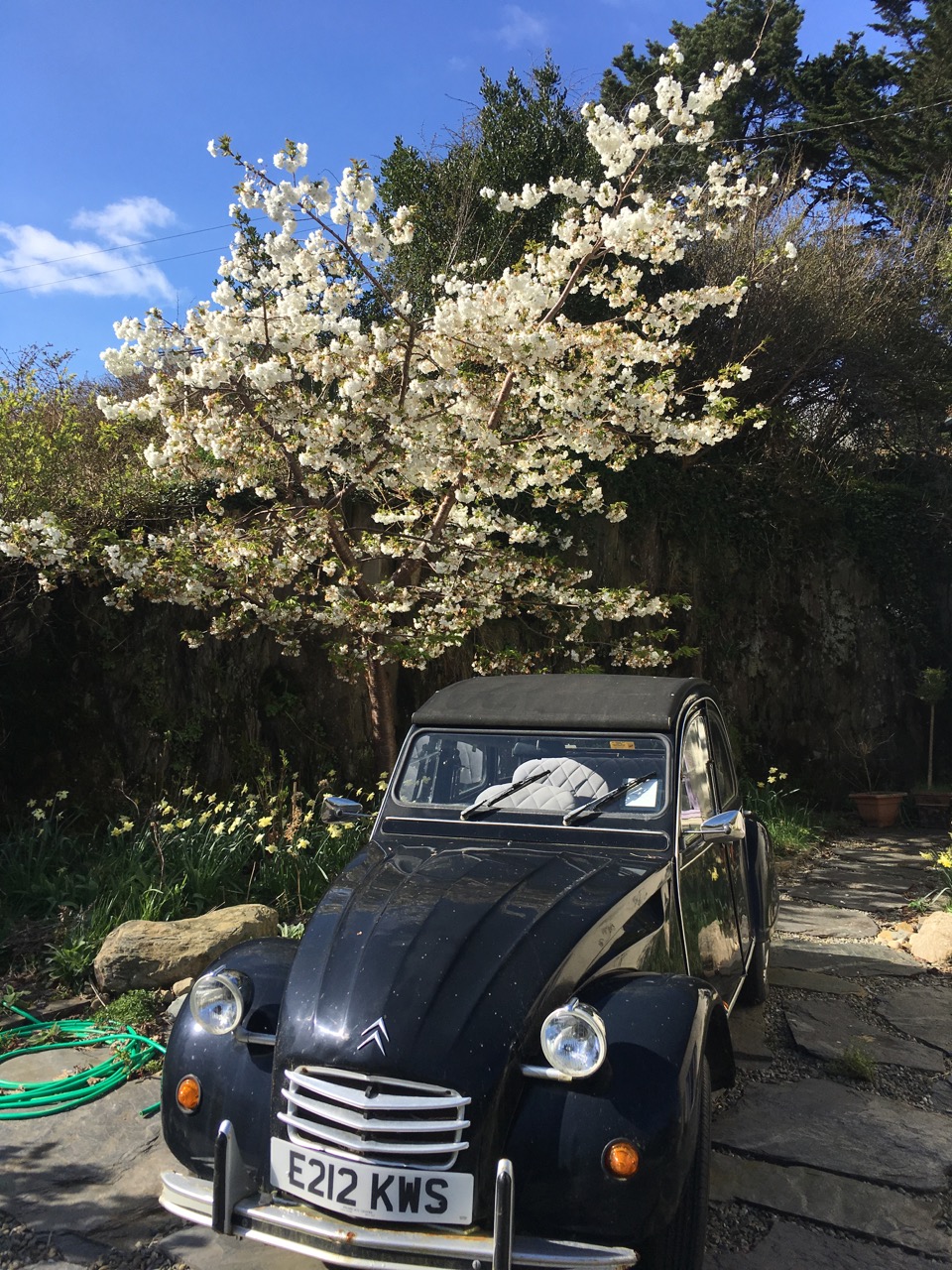 Took some pics for @Ducbird, the cherry blossom tree and the bluebell wood and fuchsias - it seems mighty early to me for fuchsias.