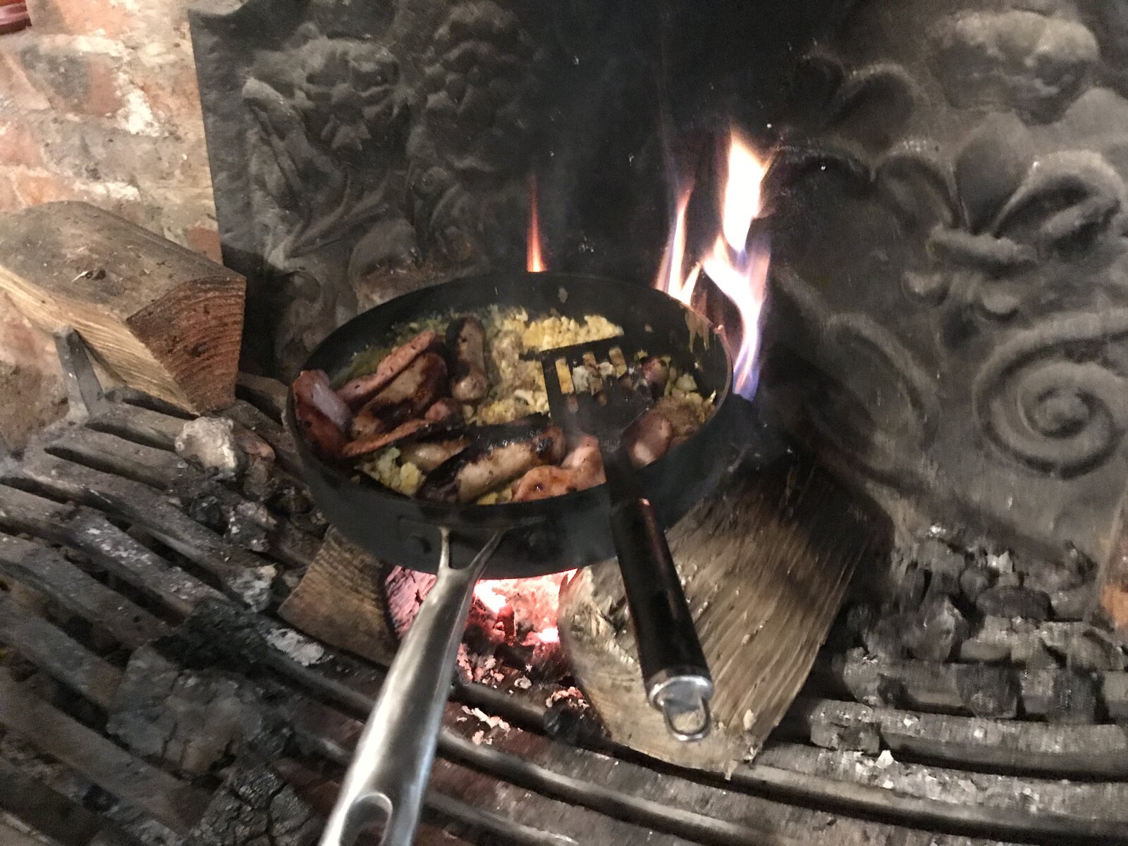 Cooked breakfast over an open fire using eggs laid by @dukesox ‘s chickens, which he kindly gave to my son yesterday :)