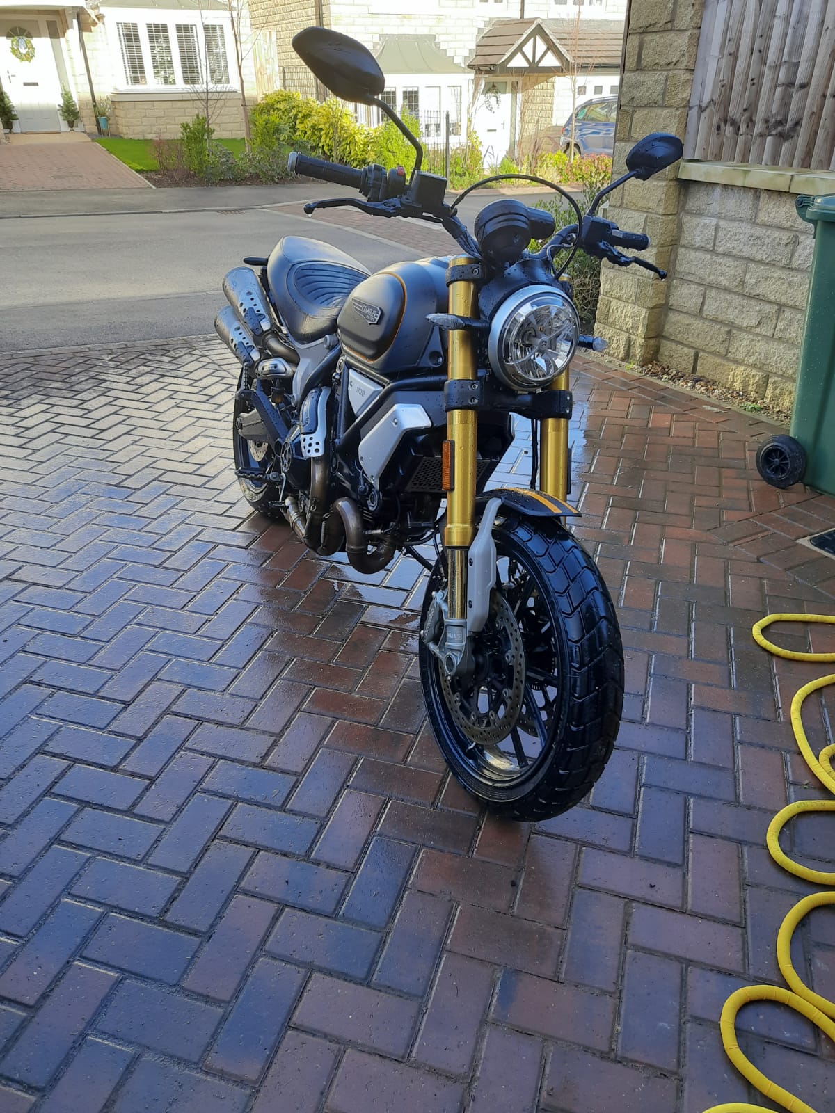 Seeing as though today looks to be the only dry and sunny day for a while (snow forecast at the weekend ) I washed and dried the Scrambler after yesterday’s ride out. Tomorrow I’ll acf50 it within an inch of its life!