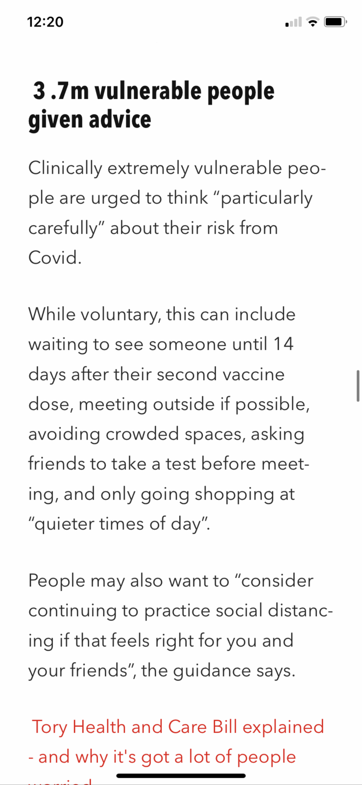 3 .7million clinically extremely vulnerable people are being told they might want to avoid unvaccinated people and crowded spaces - a move critics say has “thrown them to the wolves”.